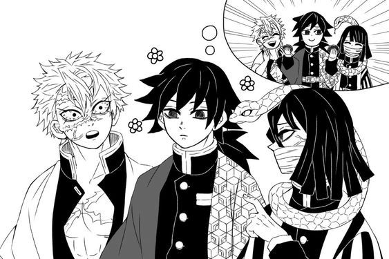 Tự dưng nghe câu này xong, Sanemi và Obanai thấy Tomioka Gyuu với cái khuôn mặt như cái bình bông trang trí trước mắt cũng không hề khó coi như trước nữa, chà...cảm giác thân thiết này là sao đây.
