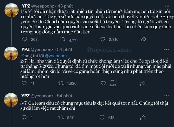 Về vụ boxset thì BOC cho Daemi house sản xuất ý. Xong 2 mẹ này bảo là hôm chụp Po bận nên không có Porsche trong boxset KinnPorsche:) Mà hình như là boxset này cũng bị hủy rôi hay sao ý