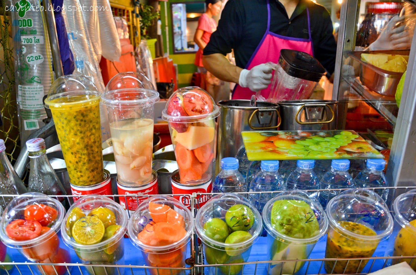Park Chaeyoung cùng đôi mắt quan sát siêu nhạy bén của mình đã tia được quầy hàng này từ khi bước chân vào khuôn viên xem pháo hoa. Sau một lúc chọn lựa cho mình và cả nhà bốn loại nước ép khác nhau, Chaeyoung vận dụng vốn liếng tiếng Thái, cùng với sự hỗ trợ của phần mềm dịch thuật, cuối cùng cũng nhanh chóng làm cho người bán hàng hiểu ra ý nàng.