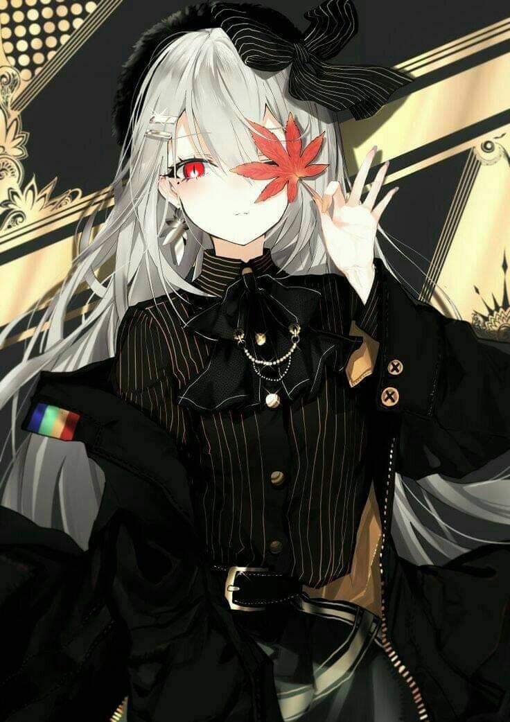 4ng áo choàng đen 1ng đứng giữa cở áo choàng ra một cô gái có mái tóc xám tro