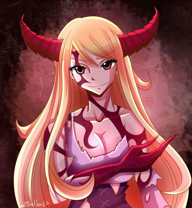 Một luồng khí màu đen bắt đầu bao quanh Lucy. Trong màn khí, trên đầu cậu mọc đôi sừng, đôi mắt nâu ấm áp không còn nữa mà thay vào đó là đôi mắt đỏ như máu tràn đầy sự sắc sảo. Bên tay phải xuất hiện vảy như loài rồng. Toàn thân đầy những vần đỏ, xung quanh toàn hắc khí