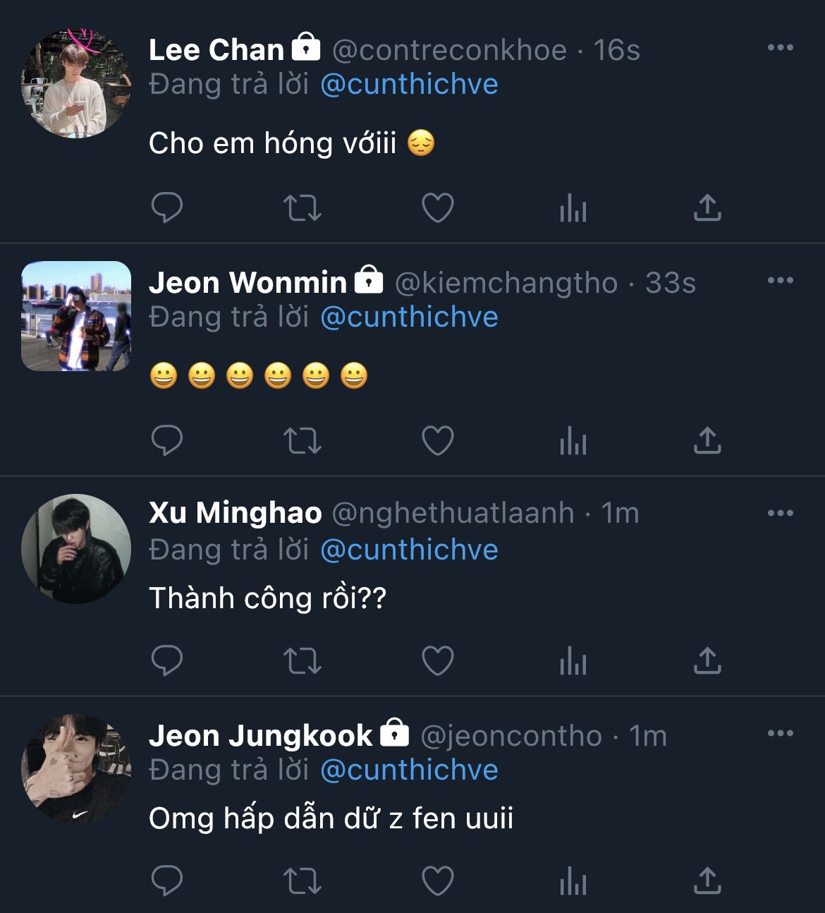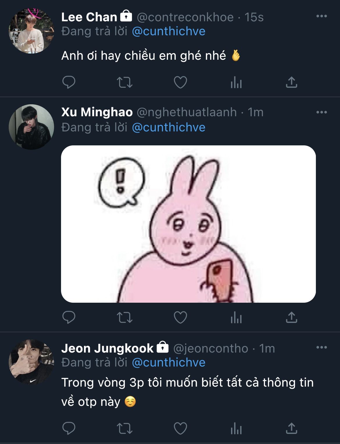 Nhưng chưa kịp để cậu nói thêm câu nào, Seokmin đã chớp mắt... rồi tròn mắt ngạc nhiên: