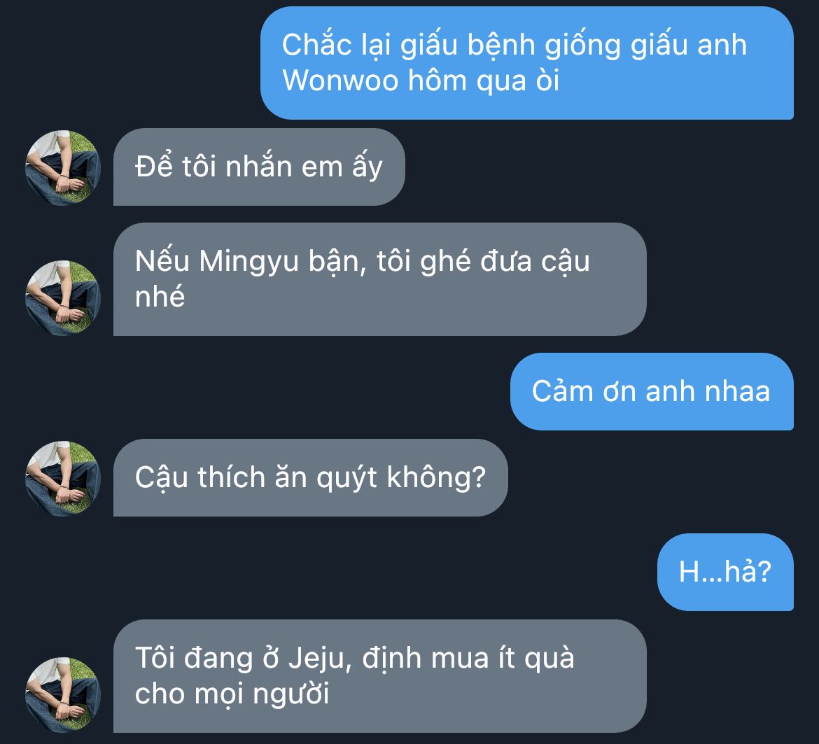 Mingyu ngạc nhiên: "Anh chưa ngủ?"