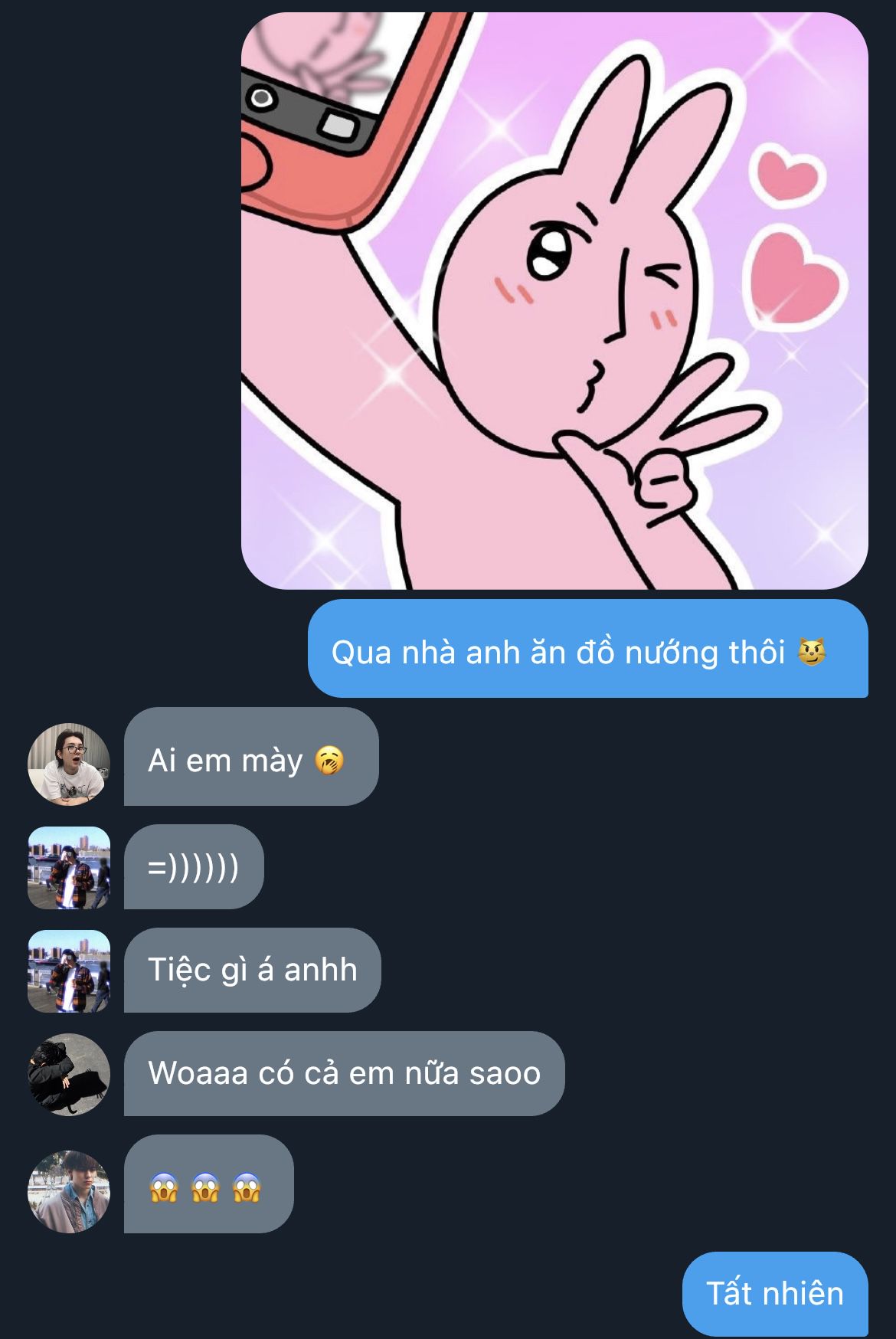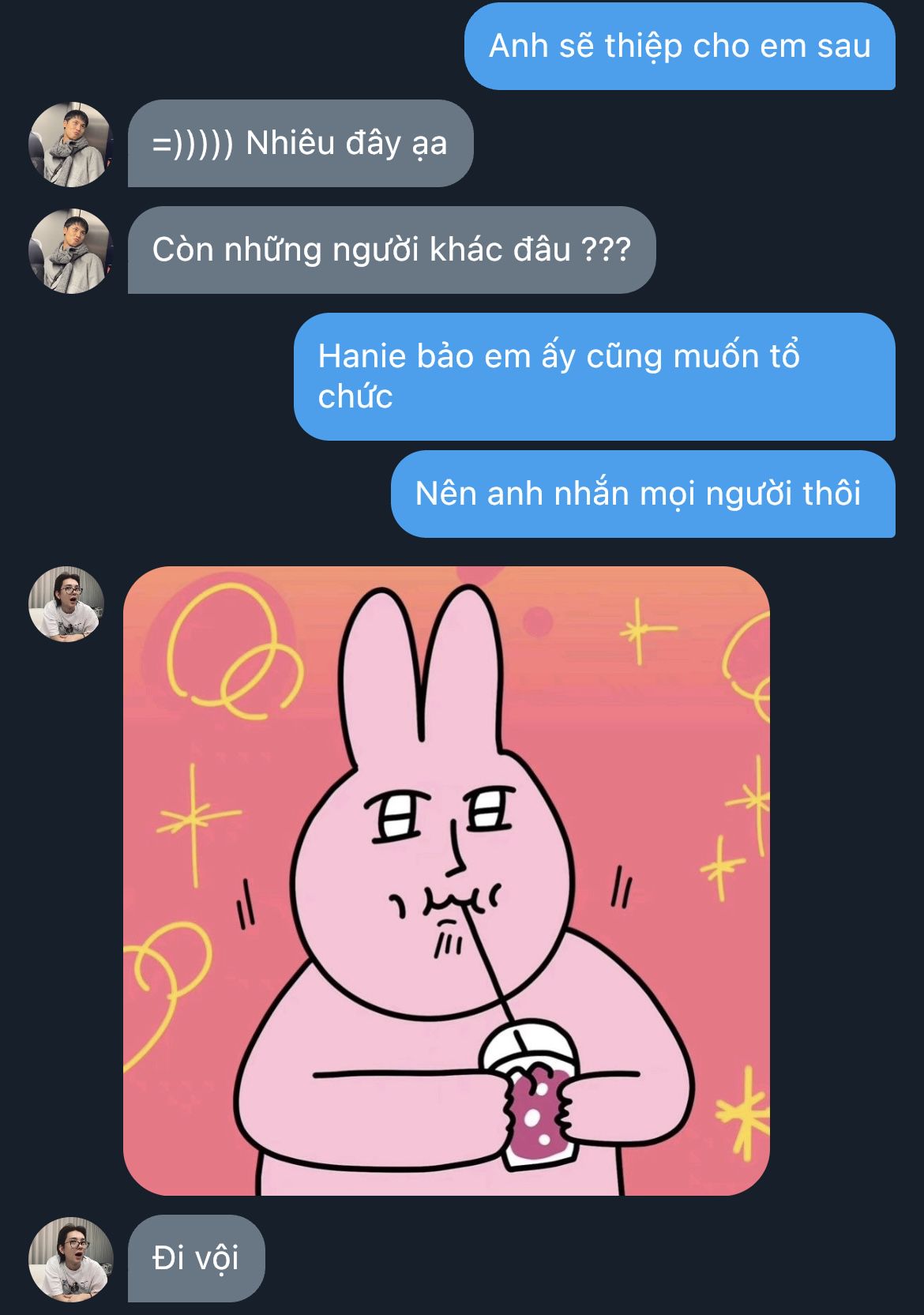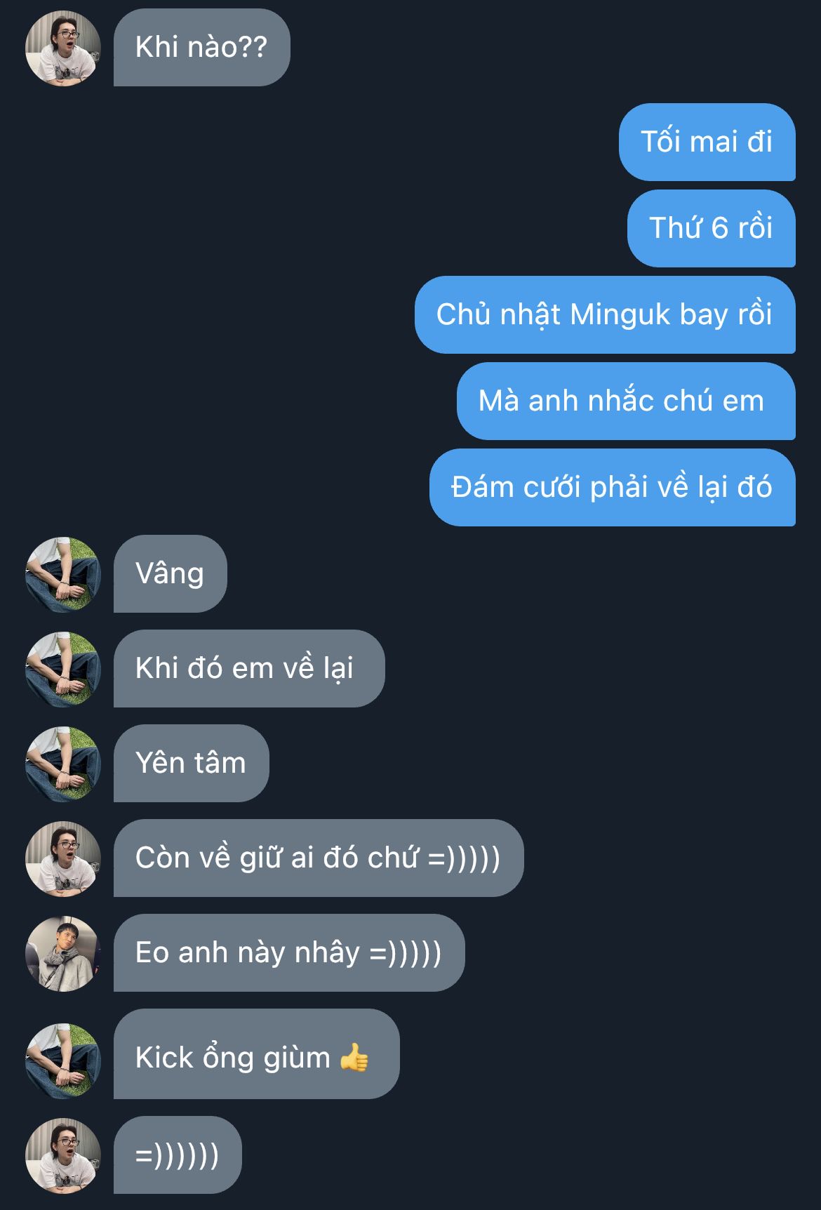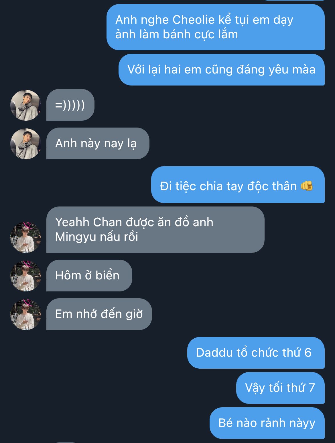 "Tôi thấy trưa nay cậu không nhắn gì, đoán chắc cậu bận nên mang ít đồ ăn đến. Canh vẫn còn ấm..." Minguk nói, hơi nhỏ, nhưng vẫn đủ khiến cả đám dừng lại, đồng loạt "ồôô~"