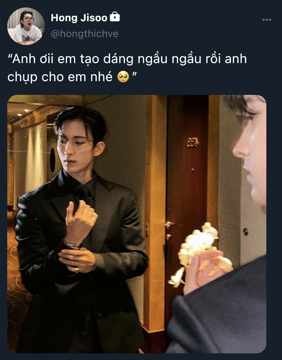 Jeonghan, mắt hoe hoe đỏ nhưng giọng vẫn vững vàng: