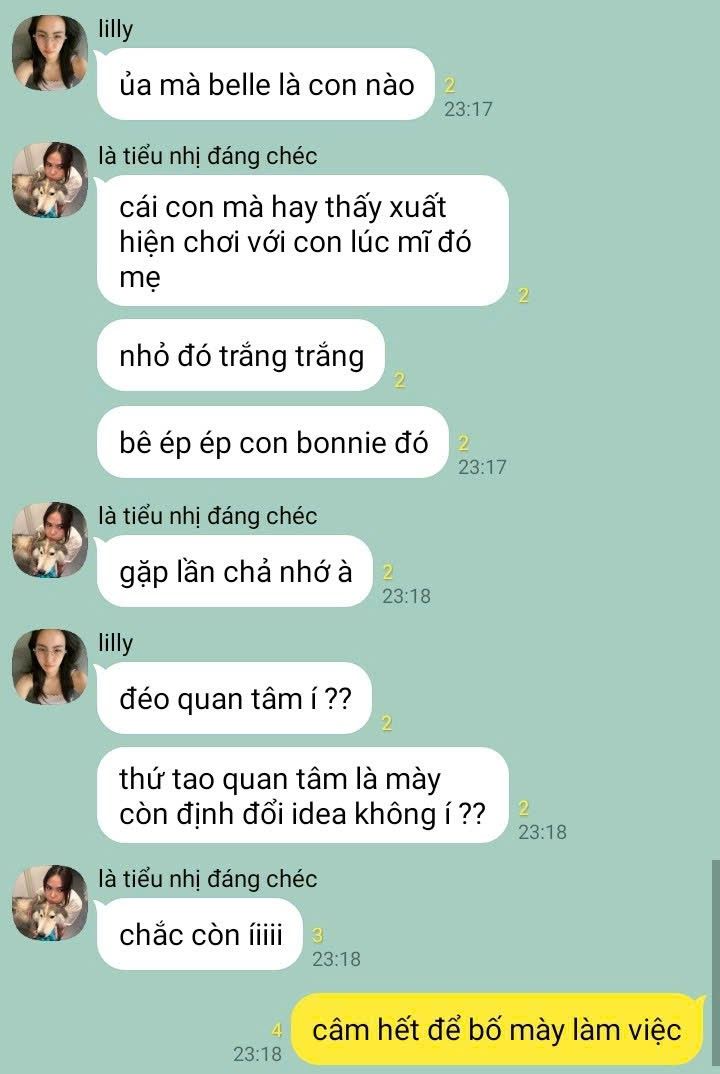 Em vừa nhắn vừa chửi thầm, rồi cũng chấp nhận số phận mà phụng phịu đi về nhà soạn đồ.