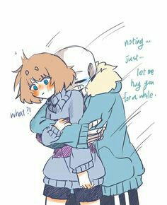 Sans bất chợt ôm từ đằng sau Frisk...ôm rất chặt...