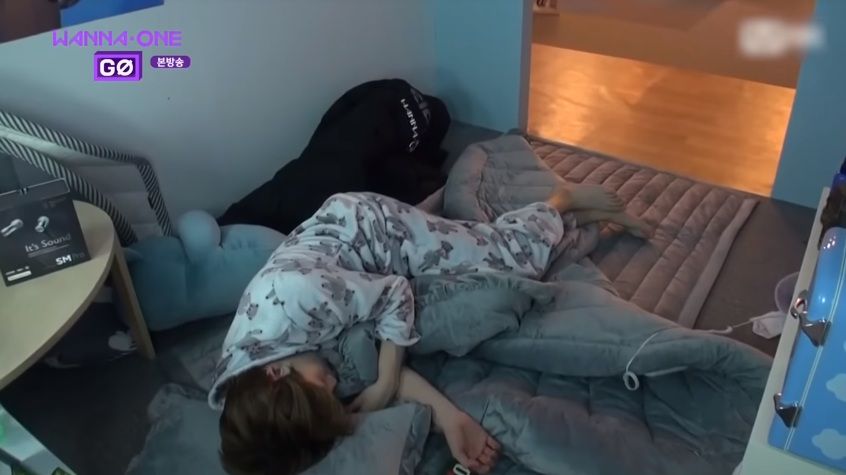 Minhyun, ngồi cạnh Jaehwan, nhìn thấy Sungwoon đổi chân đứng liên tục liền hỏi. "Anh có muốn ngồi với em và Jaehwan không? Anh cũng có thể bỏ balô xuống mà."