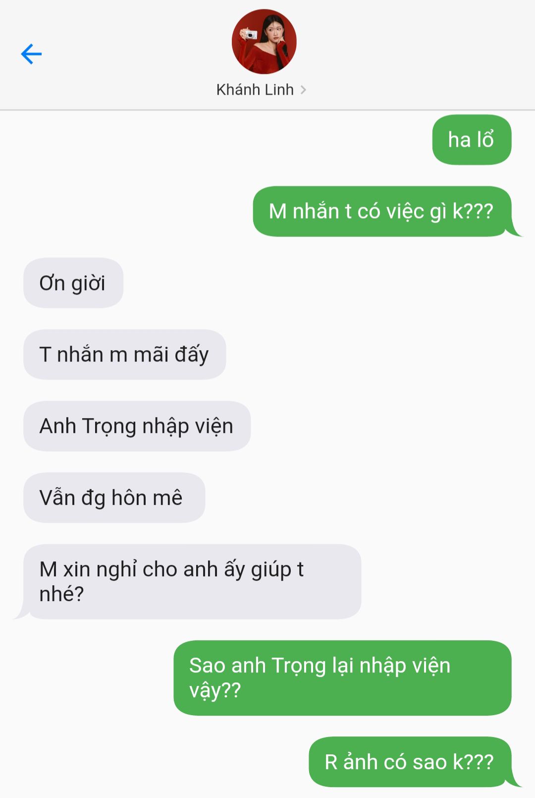 - Alo, anh Quân hả? Là em, Khánh Linh ạ. Trời ơi, anh mau đến bệnh viện đi, anh Trọng... ảnh gây gổ với một đám côn đồ, giờ vẫn đang hôn mê.