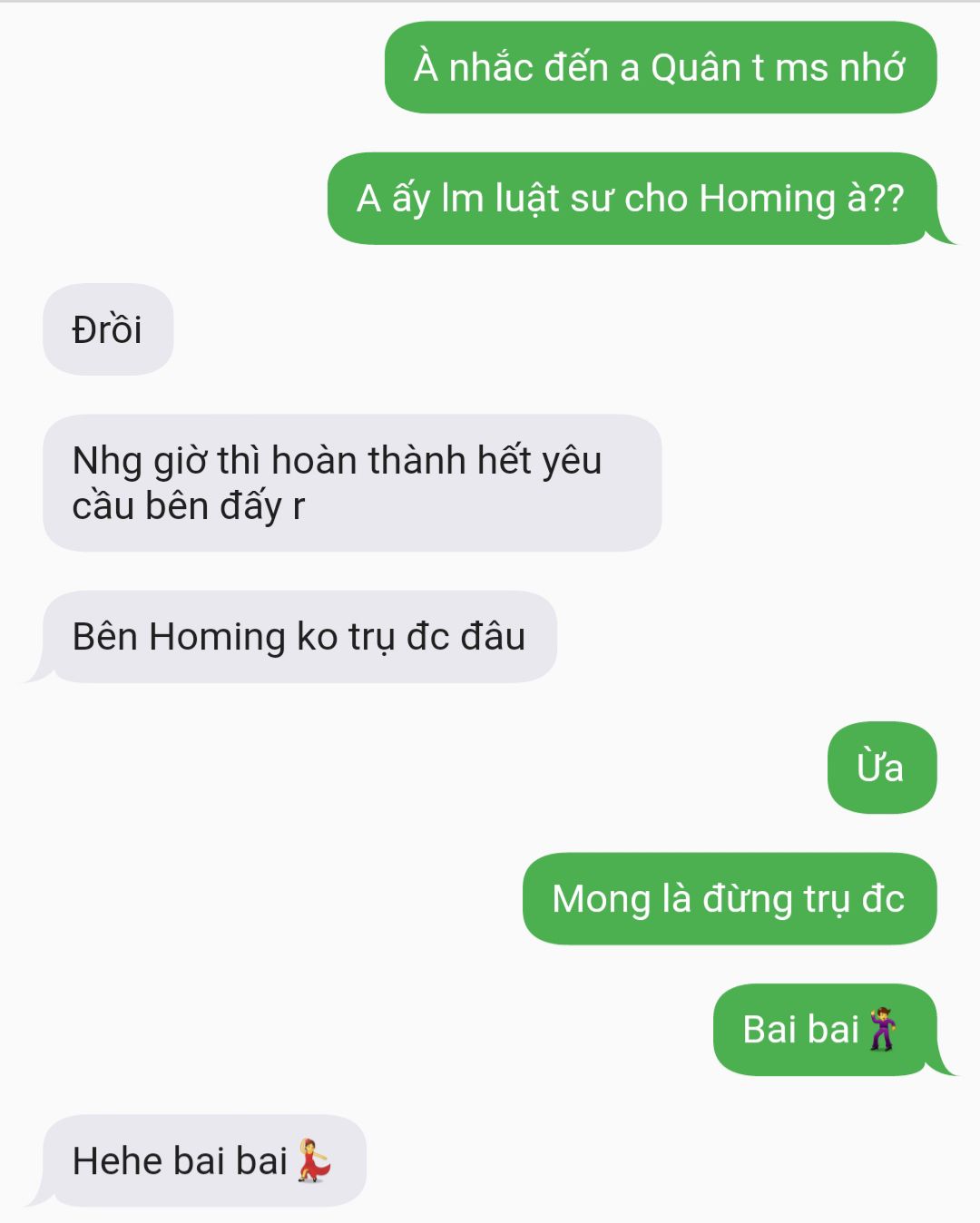 Gã bình thường sẽ không làm mấy hành động cáu tiết suồng sã với Quân, nhưng lần này gã không kiềm nổi máu nóng trong người, trực tiếp phá bỏ ngoại lệ. Trung Quân thầm khinh bỉ nhìn hắn rồi xin phép ra ngoài.