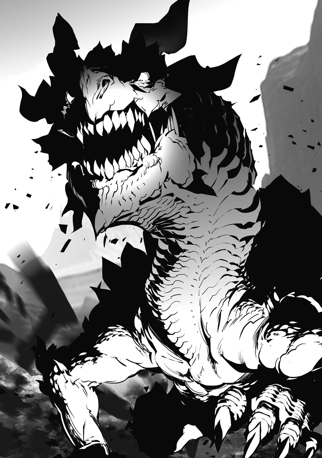 Từ trong màn cát bụi như tấm màn che, một cái bóng khổng lồ như ngọn đồi đang từ từ lộ diện, như thể đang lùa đám ma vật phía trước.