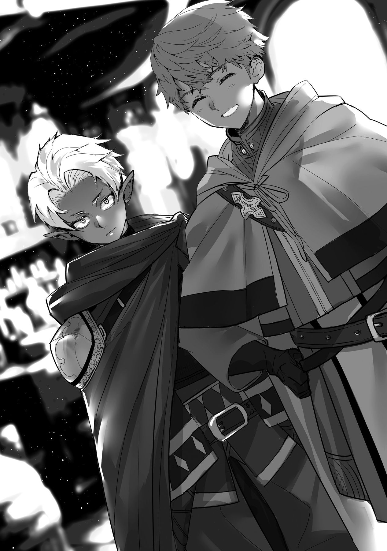 Một cậu thiếu niên người Cruz, có vẻ đã xử lý xong lũ côn trùng còn lại, thở hổn hển chen vào giữa chúng tôi. Thấy vậy, tôi tháo sợi tơ khỏi xích bằng kỹ năng Điều Khiển Tơ rồi lùi lại. Elena, với vẻ mặt căng thẳng, bước tới đứng cạnh cậu ta.