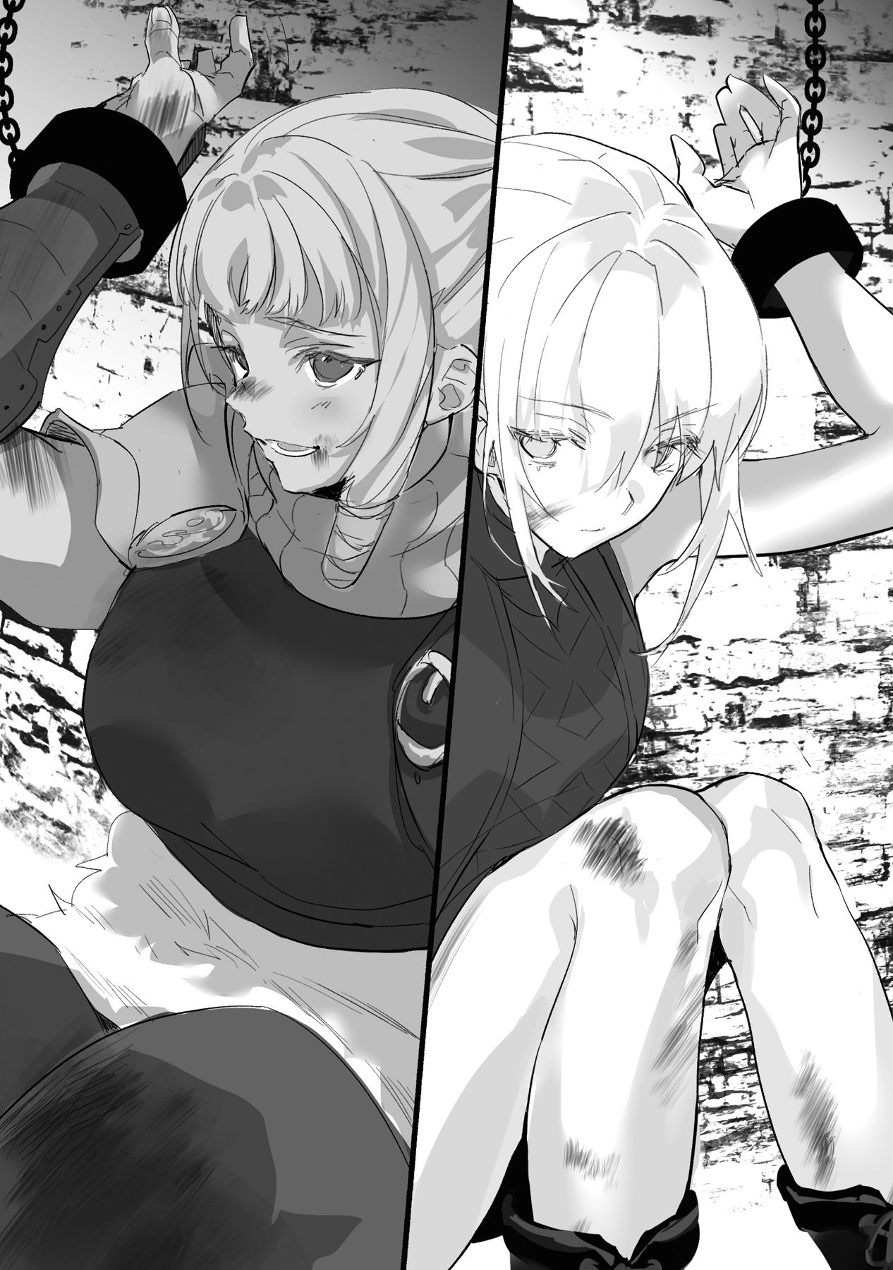 Cổ tay tôi bị xích bằng hai sợi xích kéo ra từ hai bên bức tường, nhưng chân thì không bị trói. Dựa vào cảm giác, tôi nhận ra rằng những vũ khí chính như dao găm, bộ giữ dao ném ở đùi, giày và găng tay có lưỡi ẩn đều đã bị tịch thu. Còn lại thì hầu như vẫn nguyên vẹn.