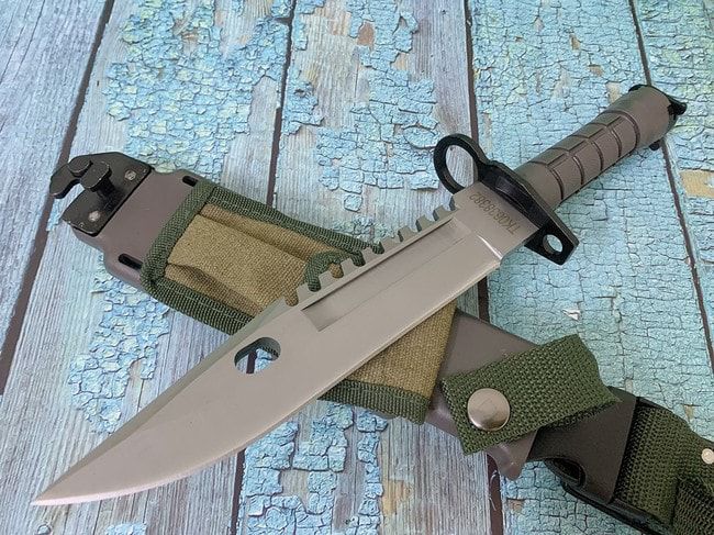 - Dao găm M9 hay Bayonet M9 được sử dụng như một con dao cận chiến. Được làm bằng thép titan cao cấp nên có thể cắt đứt được dây thép gai, cắt sắt và chặt cây.