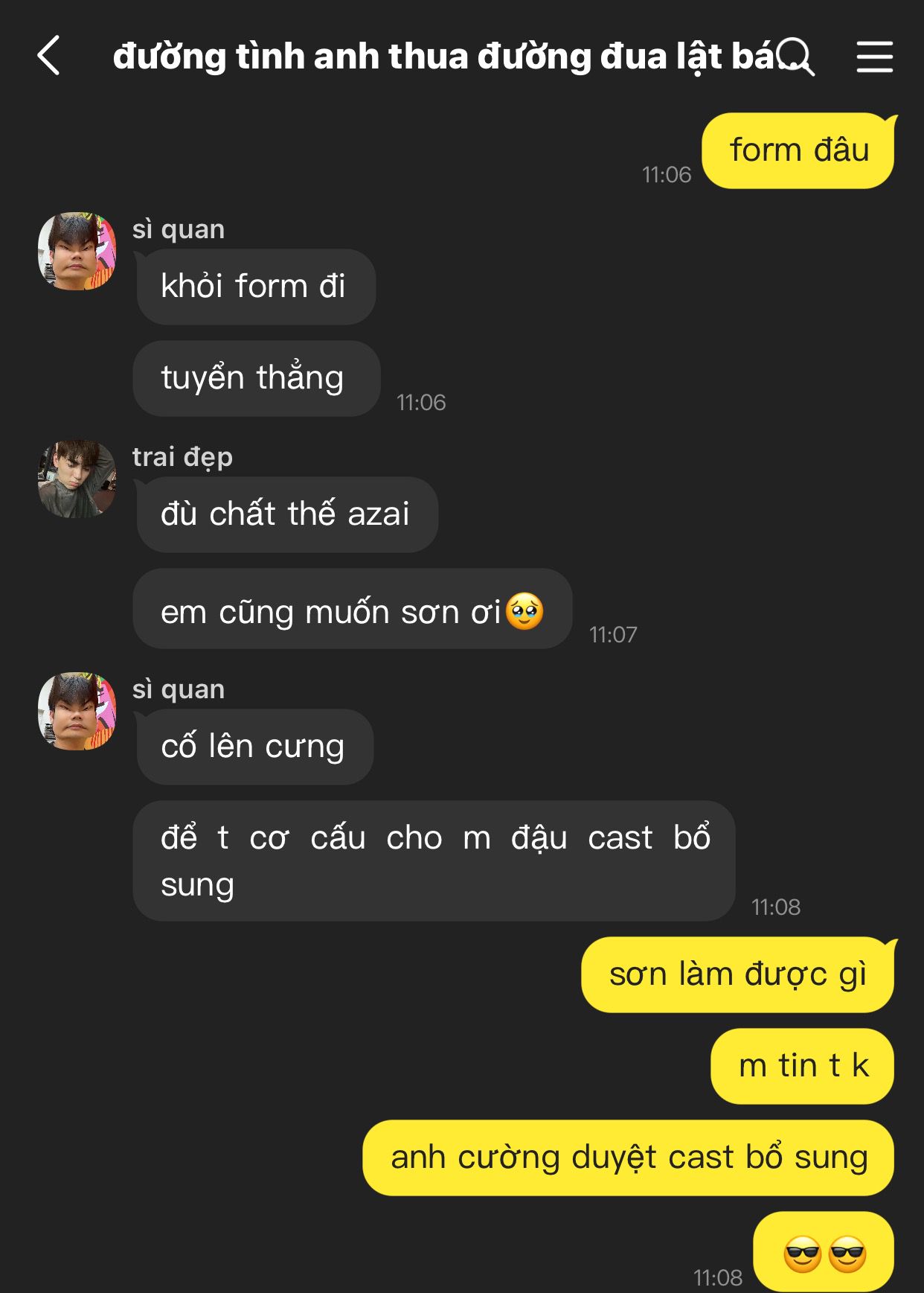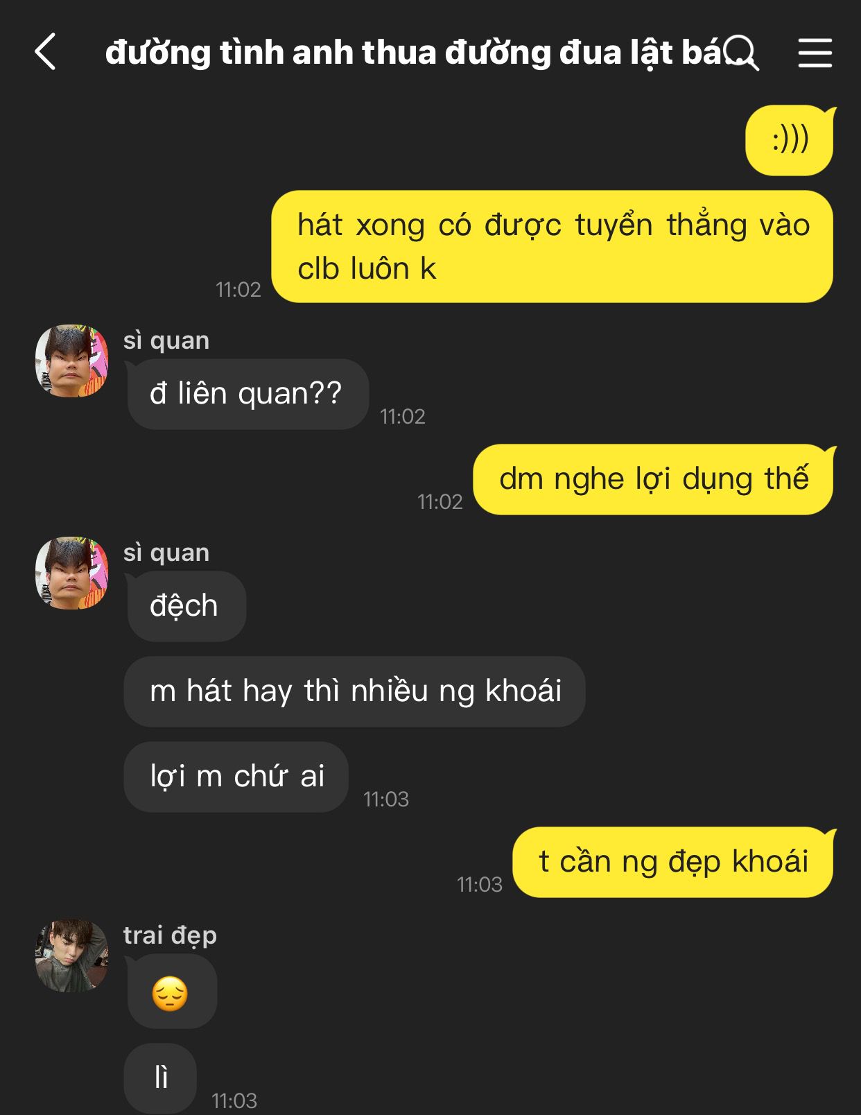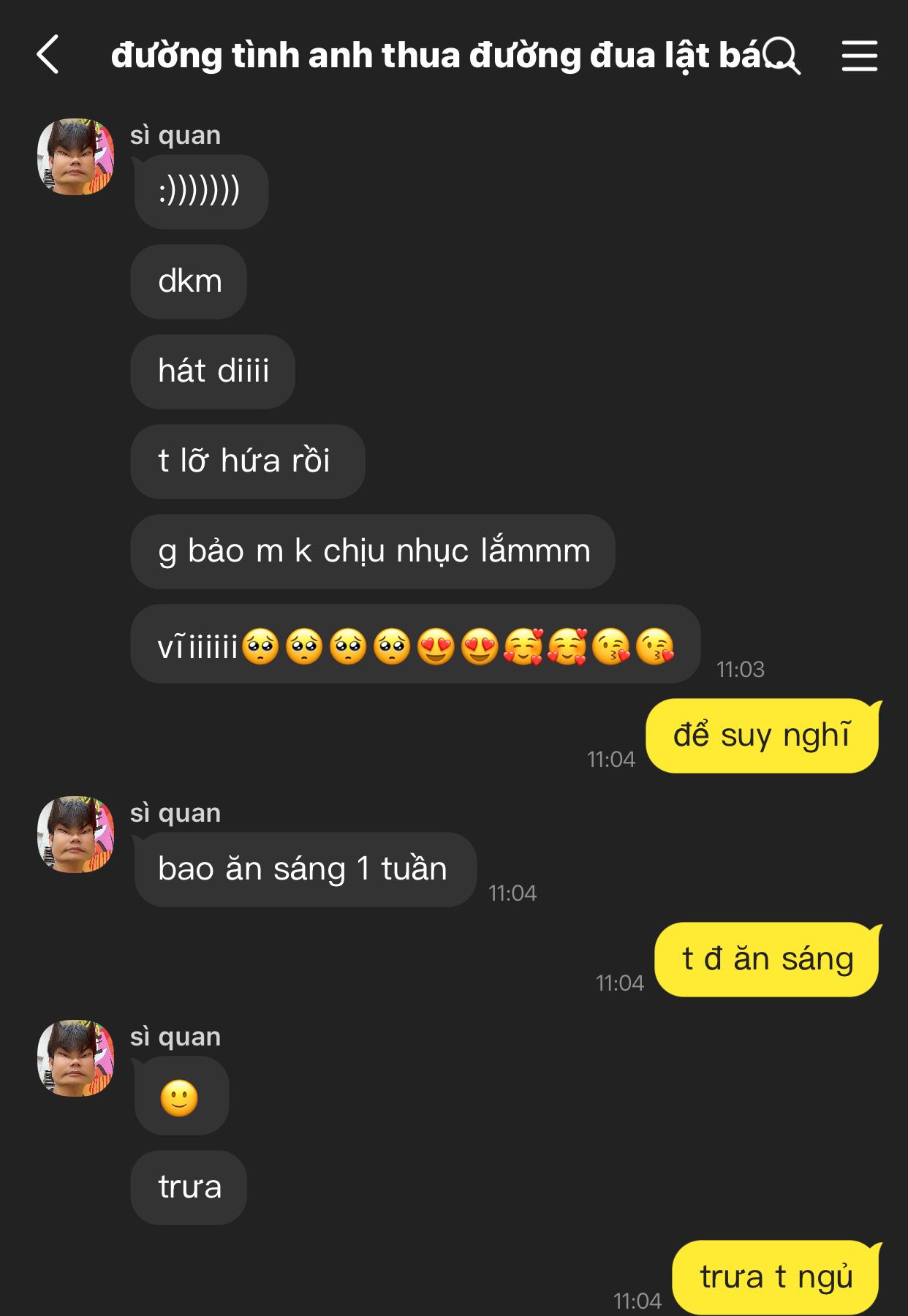 sì quan —-> đường tình anh thua