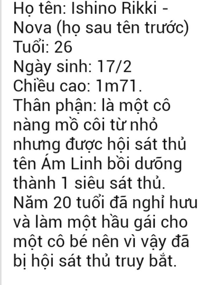(Đây là kịch bản của NovaOrigin,tôi chỉ thêm vài chi tiết bổ sung và tôi add thanh niên vào,và Rikki là Nova đó mấy ông ban đầu tôi tính cho thanh niên làm anh hùng(thanh niên Nova) cứu mĩ nhân(Ri) nhưng thanh niên lại muốn làm mỹ nhân thì tôi chiều,còn nếu ai muốn nhảy vào truyện thì Ib tôi để tôi sắp xếp cho vào vai nào đó còn nếu muốn làm phản diện hay bạn của Ri thì tùy ý mấy ông)