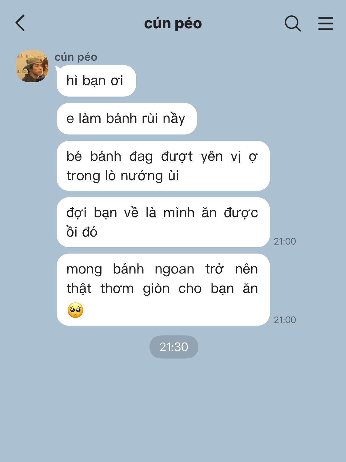 Keonho càng cảm thấy giận dỗi, buồn tủi hơn khi nhìn về mẻ bánh nóng hổi thơm giòn vừa ra lò được sắp xếp ngay ngắn trên đĩa nhưng chẳng có ai thưởng thức, cả cacao nóng được đổ đầy trong cái cốc nặn hình "cookie xấu xí" mà Seonghyeon đặt tên cũng không sưởi ấm được dạ dày của ai. Tin nhắn đã gửi từ một tiếng trước không một lời hồi đáp.
