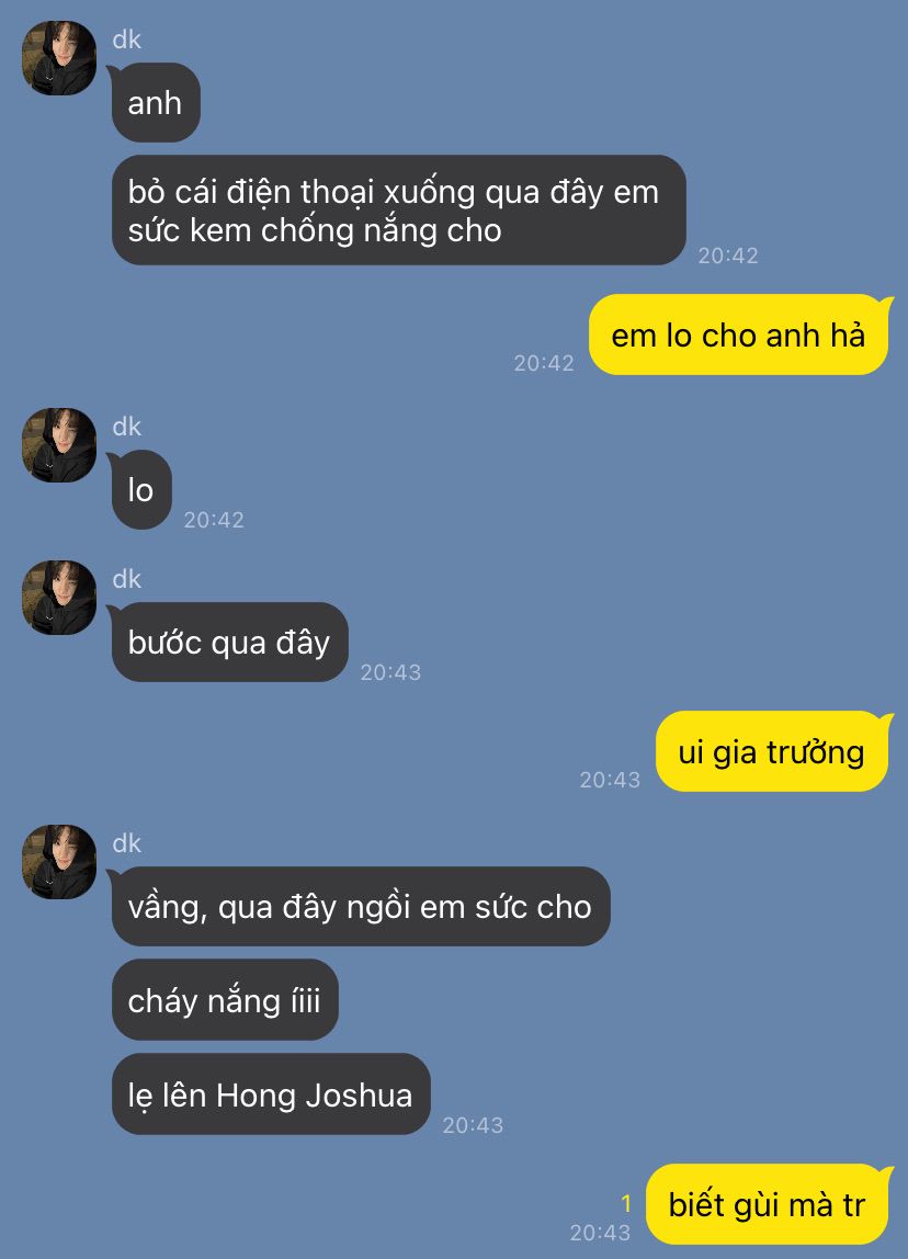 Joshua chỉ bĩu mỗi với người kia rồi dời mắt đi chỗ khác, mà hơi lạ khách sạn gì ít người anh với Seokmin ở đây mà chả có fan hay gì chụp lén
