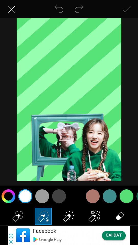 Mở picsart. Mở nền trắng với size 512x800. Sau đó vào vẽ vẽ nền màu theo ý thích. Vì lần này tài nguyên màu chủ đạo là xanh nên mình chọn xanh.