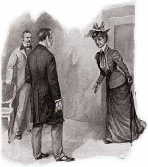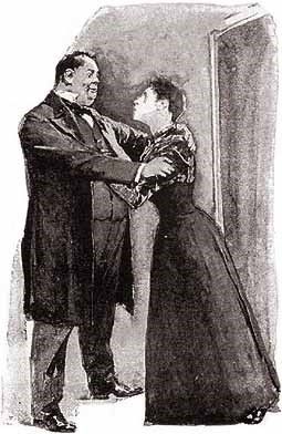 Holmes vừa dứt lời thì một người đàn ông xuất hiện ở cửa: một người to mập, có vẻ rất khoẻ mạnh, tay cầm một cây gậy bự. Khi trông thấy ông ta, cô Hunter rú lên, nhưng Holmes đã nhảy tới, đối mặt với ông ta.