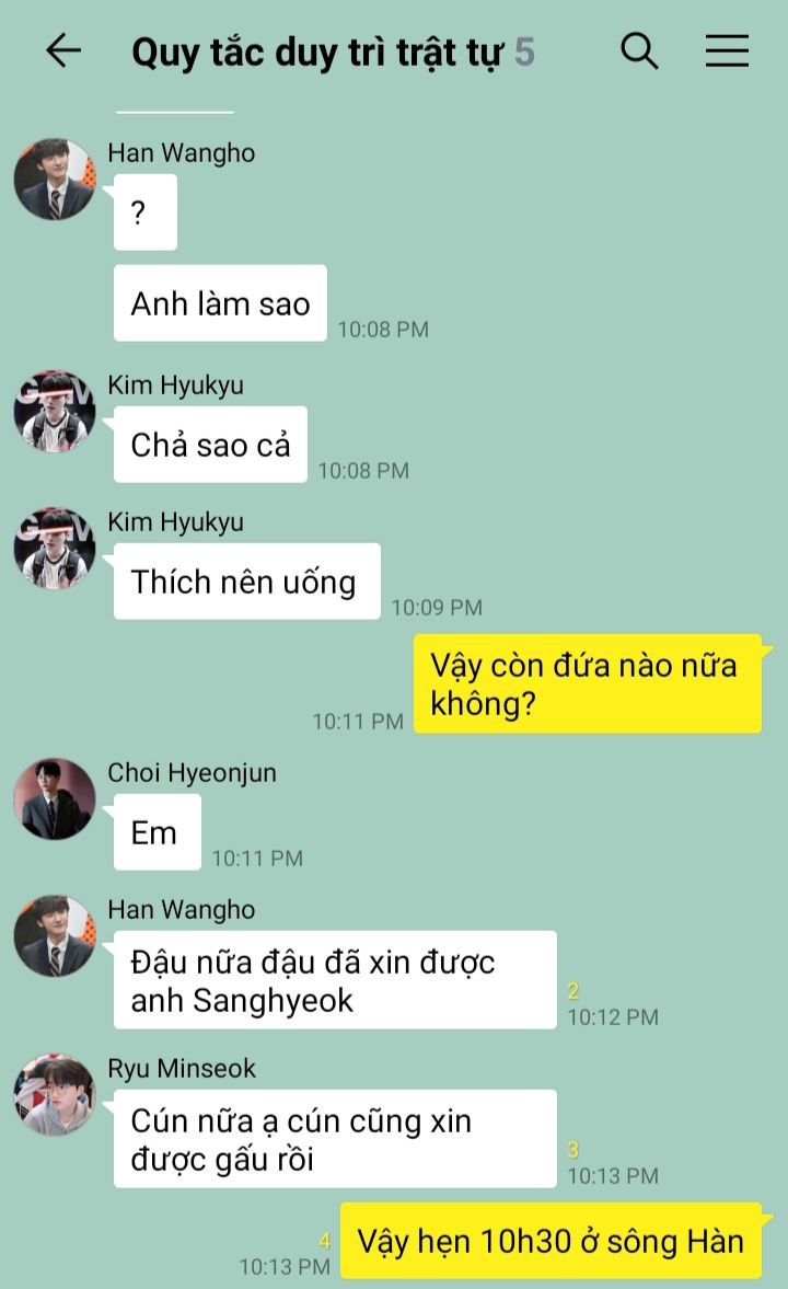 Cả hội hẹn nhau ra sông Hàn, uống rượu và tâm sự. Mới được nửa cuộc chơi, con gấu đã đến bắt con cún đi. Đến lúc kết thúc cuộc chơi thì cả hội đã say tí bỉ. Nhưng vì hứa với anh Sanghyeok sẽ uống ít nên Wangho vẫn còn tỉnh táo. Cậu gọi điện cho Sanghyeok đến đón.