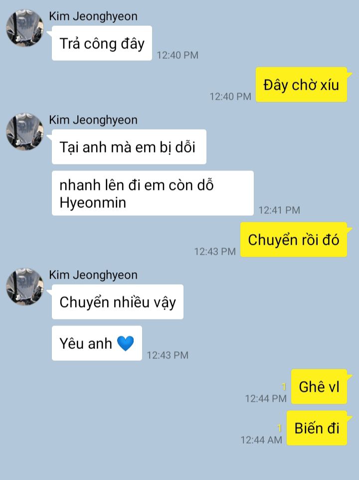 Sau khi những lời nói từ anh thì Hyeonjun bật khóc. Lần này người hoảng là anh rồi. Anh vội vàng ngồi dậy rồi ôm cậu vào lòng.