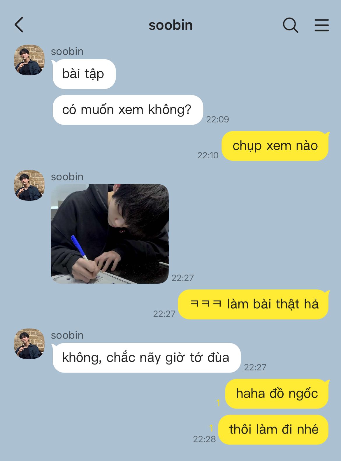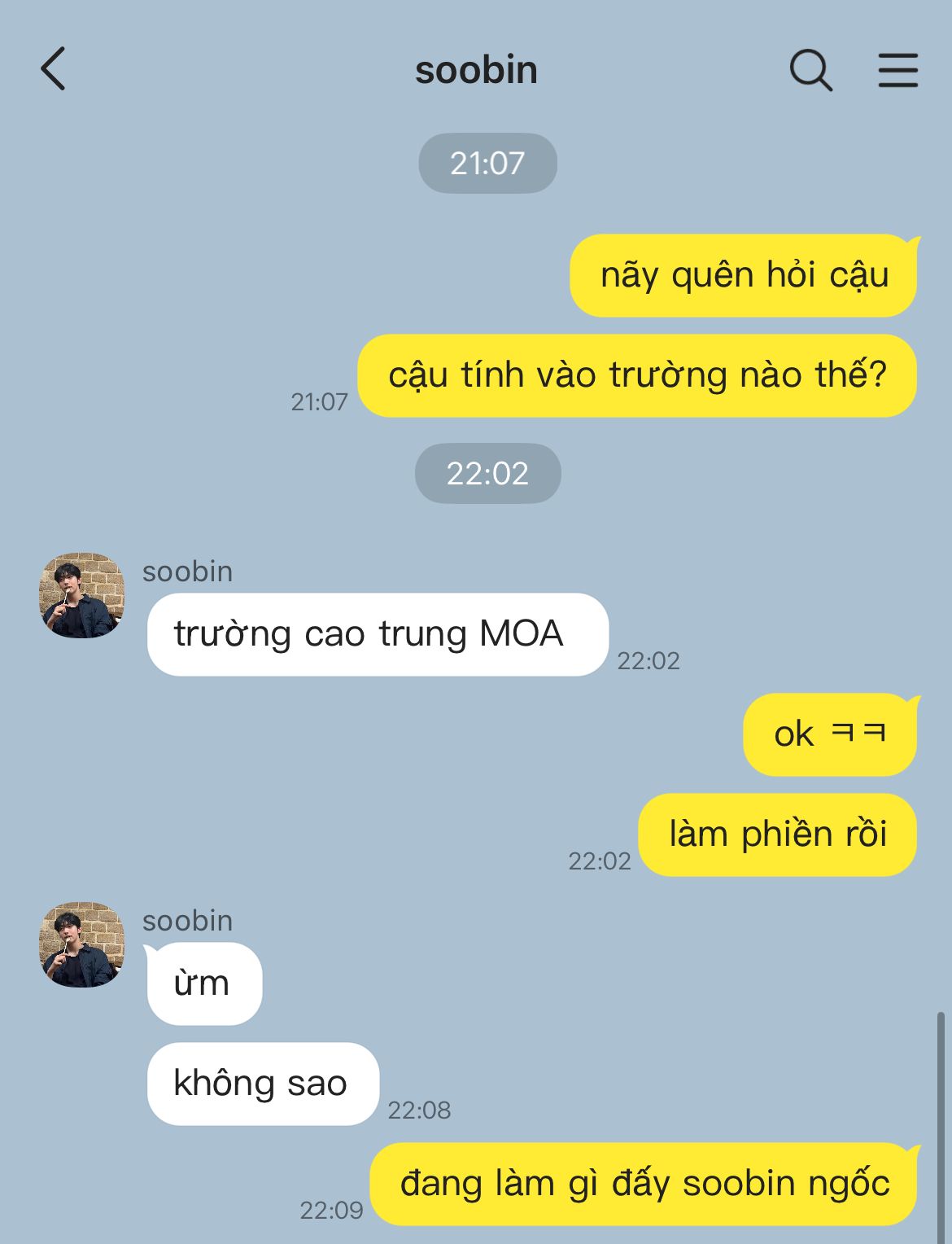 về đến nhà, dù đã tự dặn lòng không làm phiền soobin nữa, nhưng cuối cùng là vẫn nên nhắn tin làm phiền chút, chỉ là cậu hơi nhớ.