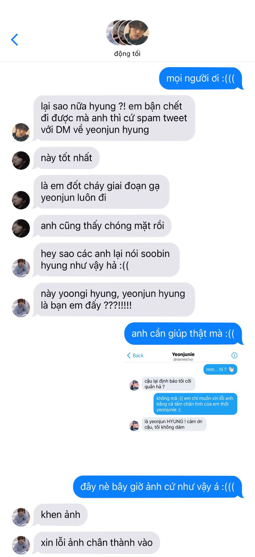 yeonjun cứ đề phòng gã mãi, và soobin lại phải đi xin tư vấn của các anh em. nhưng có vẻ như yoongi và beomgyu cũng thấy hơi mệt vì sự u mê quá độ của gã rồi
