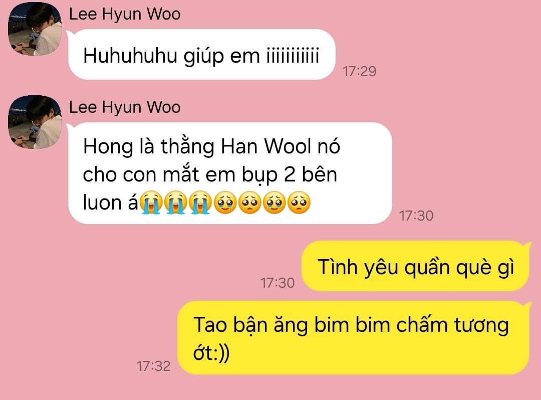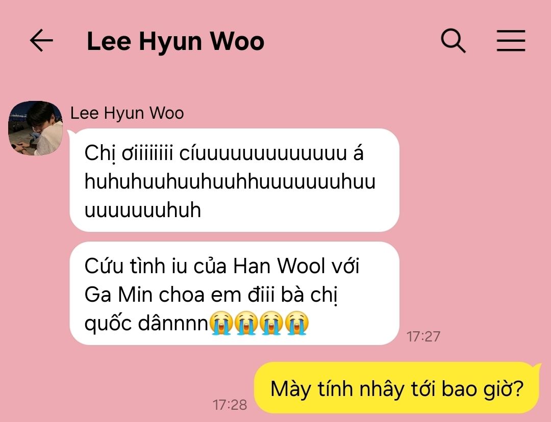 Tao nghi mày vô đó xong lại khóc như Han Wool cho coi =))))))