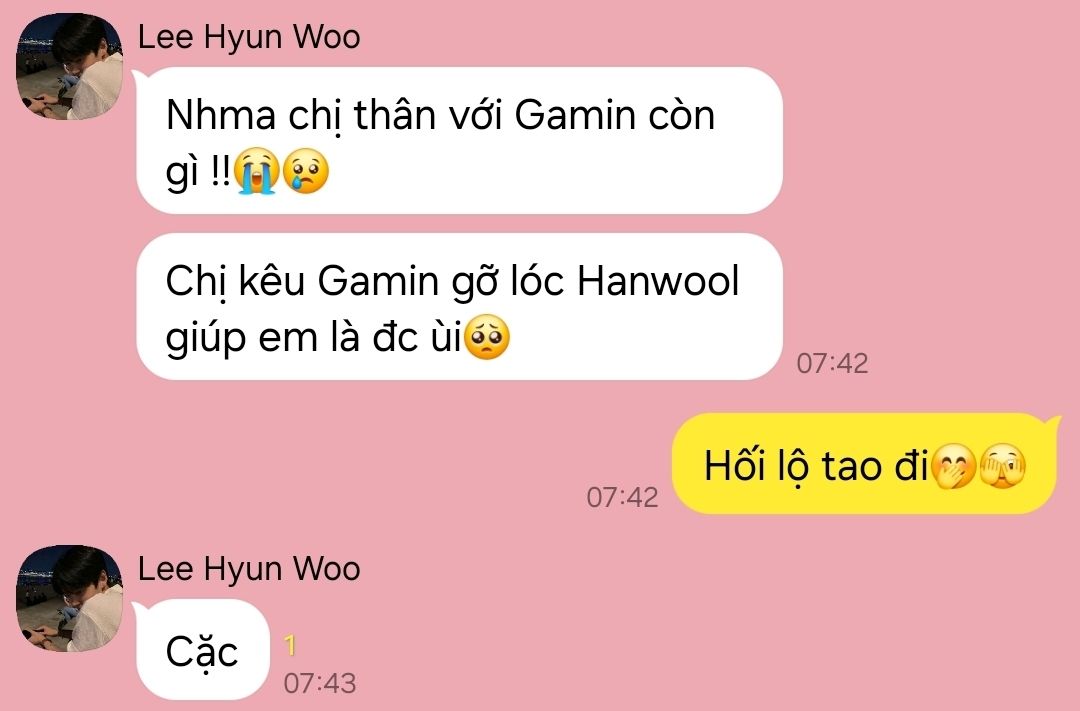 Ủa mà mày tính block Han Wool tới khi nào vậy?