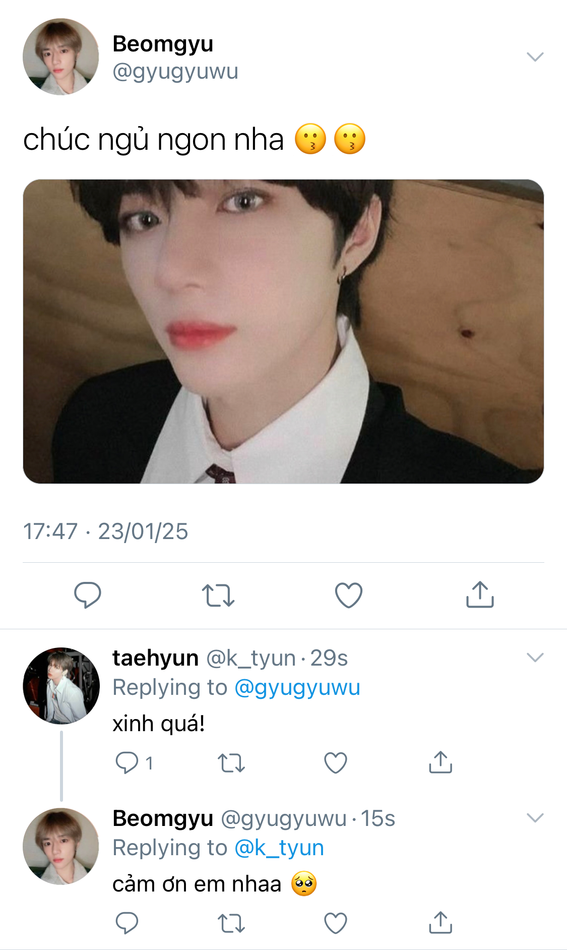 Beomgyu vẫy tay lại với cậu trong khi cố giấu đi vẻ thất vọng trên mặt. Anh tự bĩu môi với mình khi hồi tưởng lại cuộc tương tác ngắn ngũi của hai người họ trong đầu.