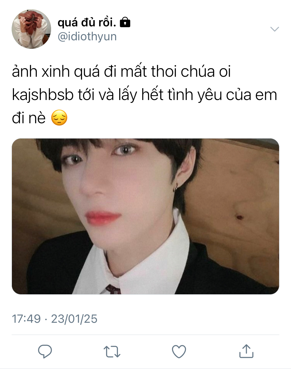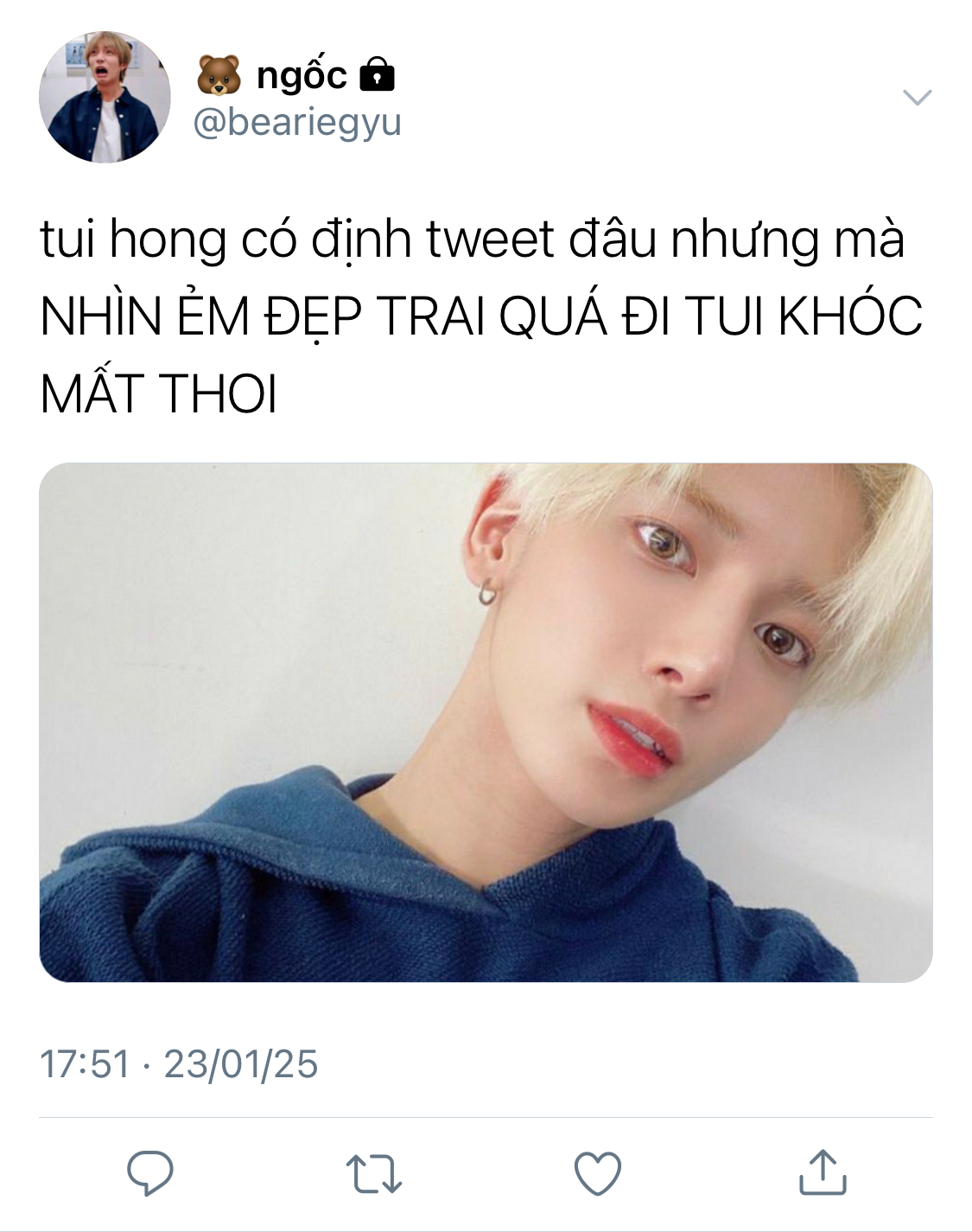 Beomgyu ấp úng khi anh nhìn thấy rõ được toàn vẹn khuôn mặt của cậu trai kia.