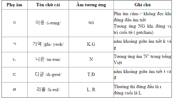 - Nguyên âm đứng một mình thì có âm ㅇ , ví dụ từ 의사