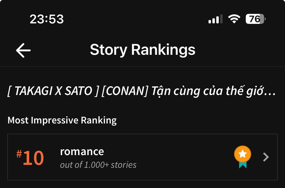 Quàoo ăn mừng thuii, truyện lọt top 10 romance rùiiii, cảm ơn mn nhìuu