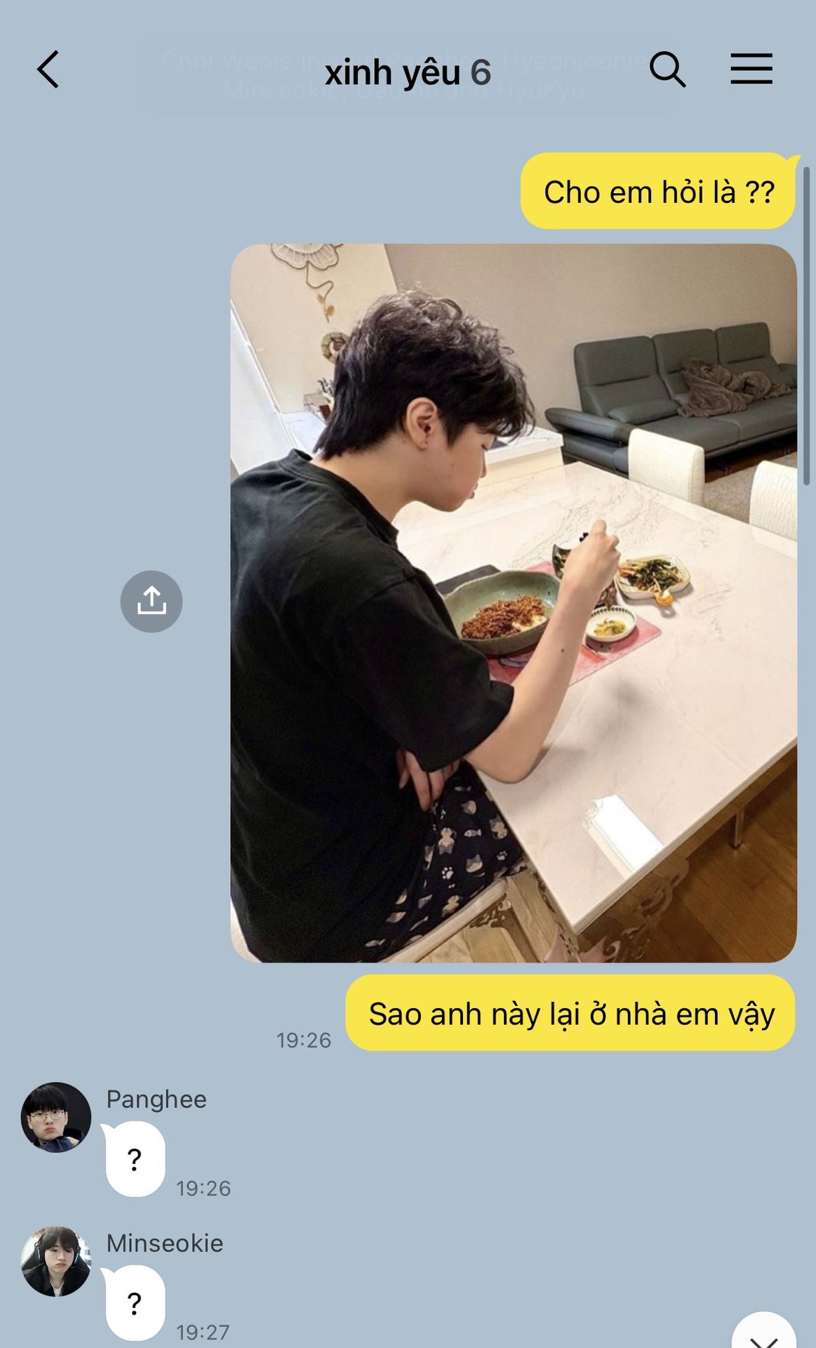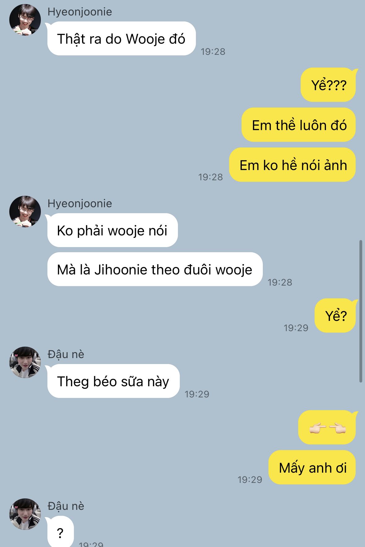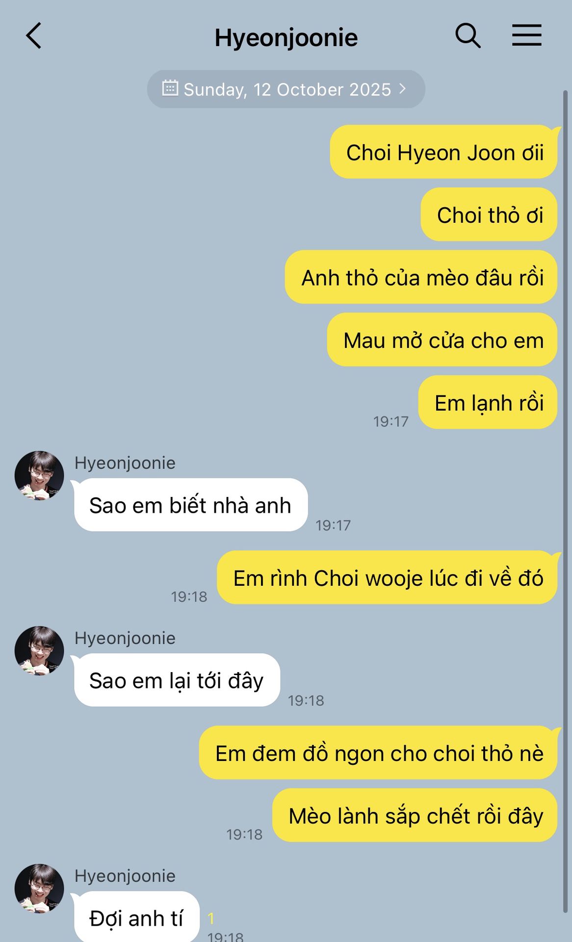 " Thế Hyeonjoonie có gì muốn kể với em không "