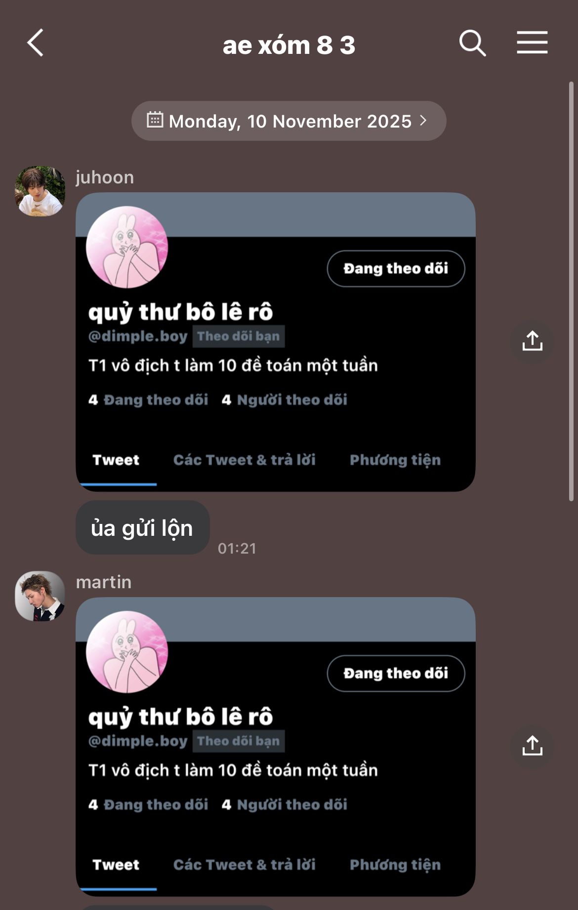 gr của tin jju với lúm ( vì tin chơi với cả kẹo và lúm nên đều có trong gr của cả 2 =))))) )