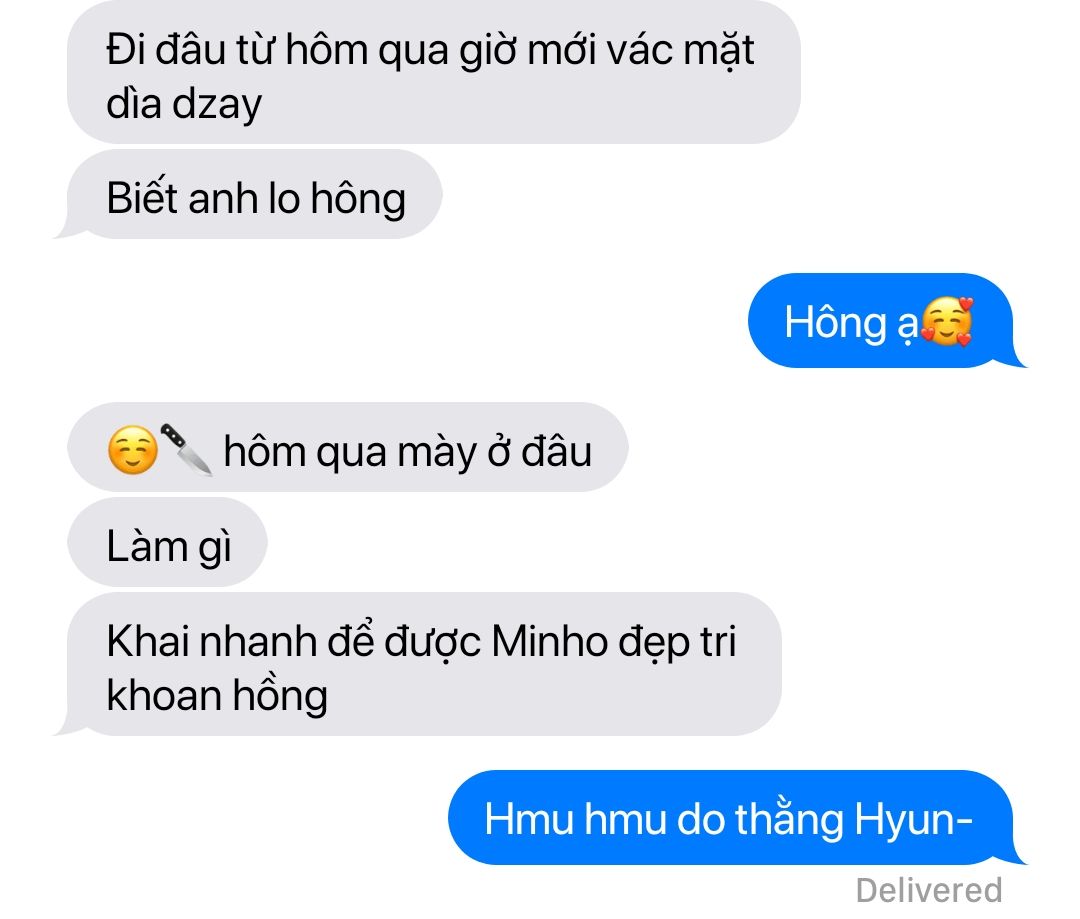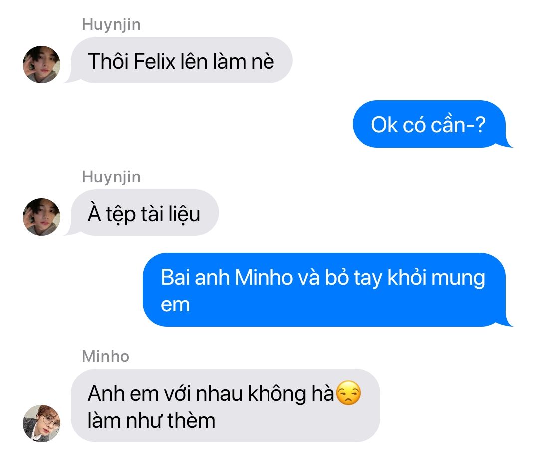 Minho vừa thấy Felix liền chạy lại bíe cóc cho một cái làm bíe ôm đầu