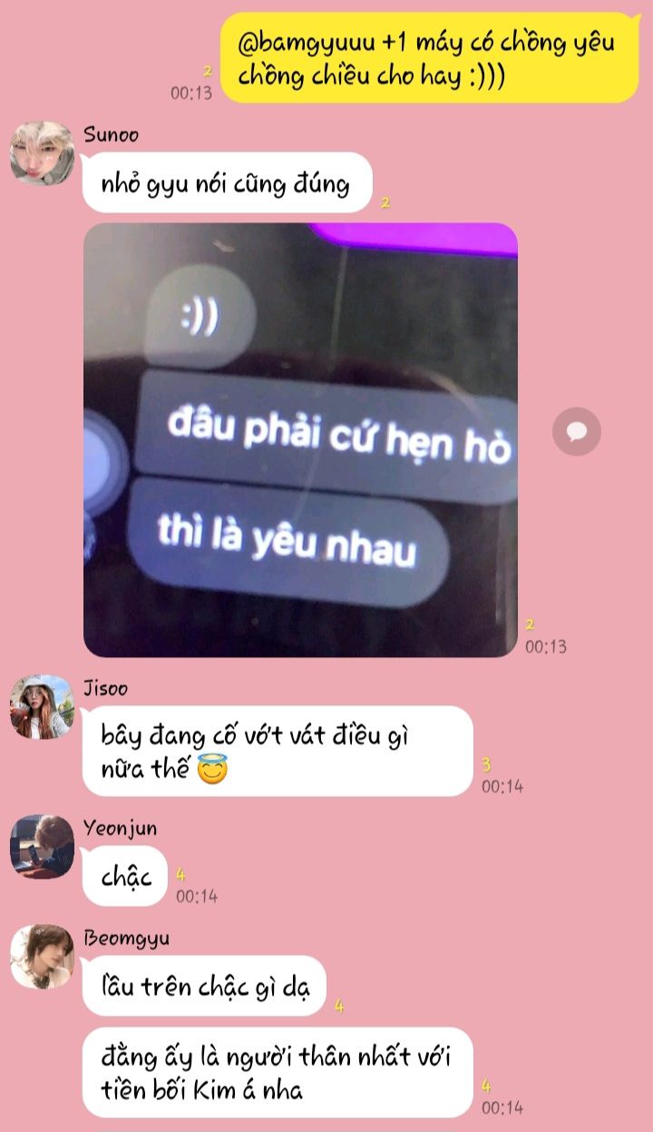 Group chat: Yeonjun, Beomgyu, Wonyoung, Jisoo, Haewon, Sunoo, Jungkook: