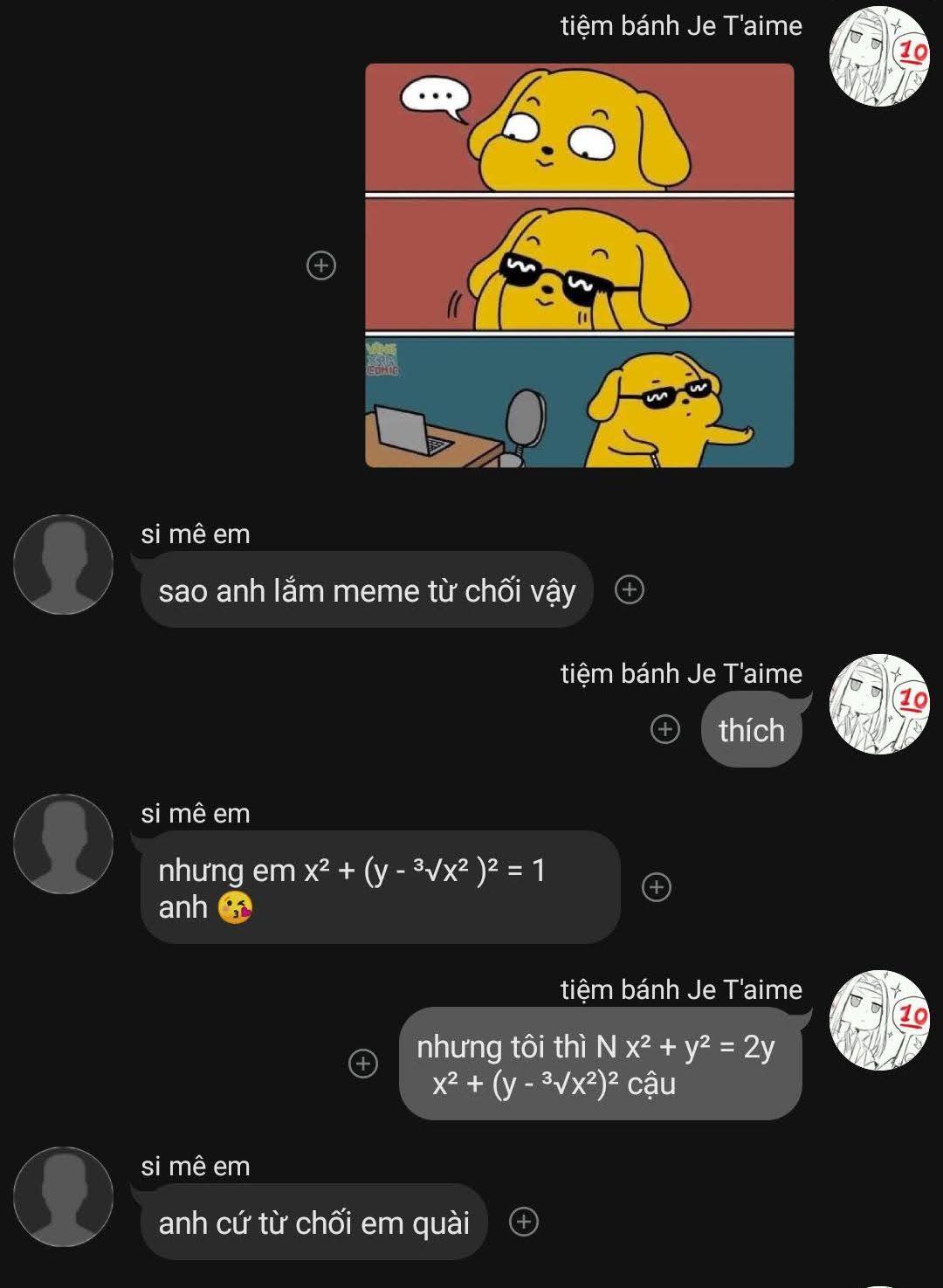 Kết hợp cả hai, ta có câu của Gia Nguyên là "nhưng tôi thì NO ❤ cậu"