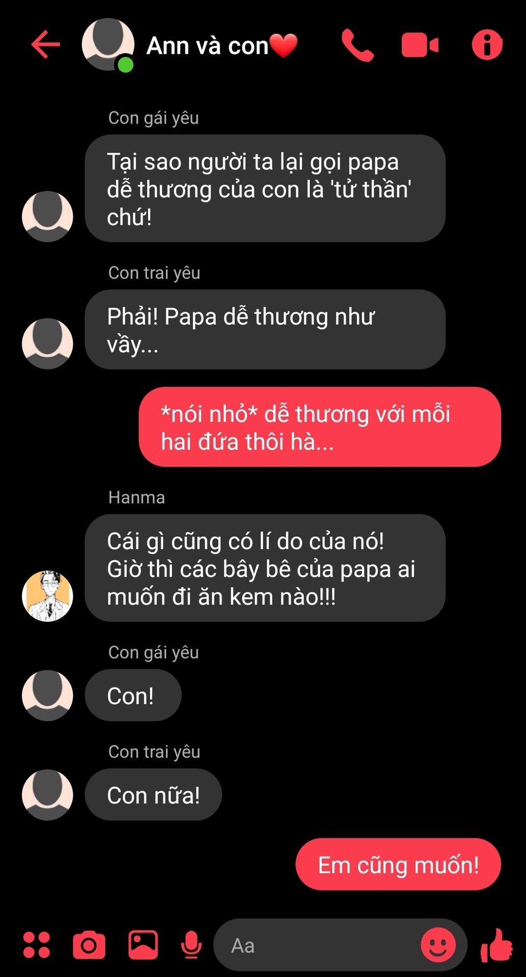 Đây là mẩu chuyện nhỏ hàng ngày của gia đình nhỏ nhà bạn. Câu chuyện thật dễ thương của bạn, anh yêu và con yêu của bạn.