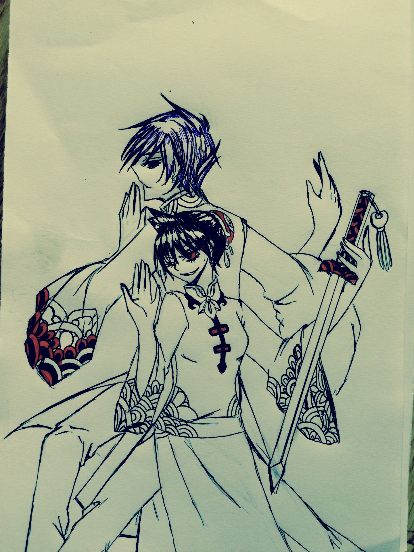 B2: phác xong rồi các bạn dùng bút đen line vào :vvv ( đừng chú ý họa tiết :v line vội quá :v )