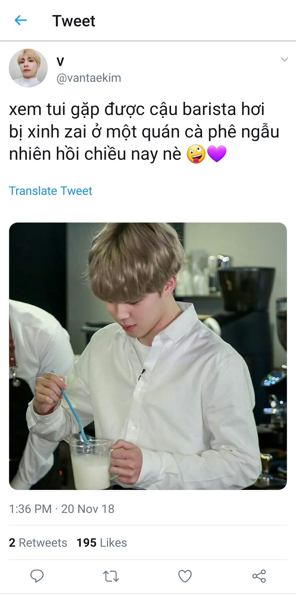Chuyện Kim Taehyung u mê cậu barista họ Park.
