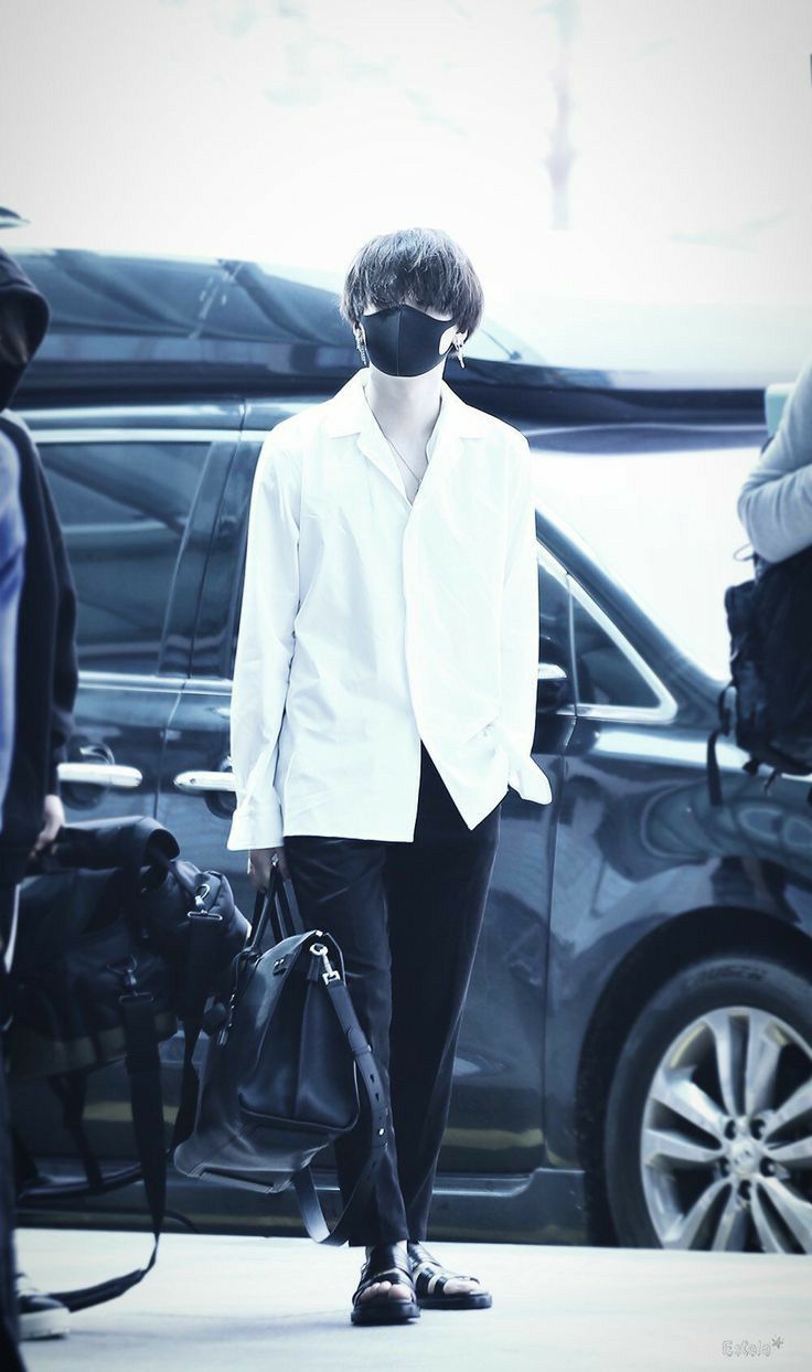 Các chàng trai của chúng ta hôm nay. Hãy tưởng con xe hơi phía sau Yoongi chỉ là xe buýt như trên thôi nha các cô huhu.