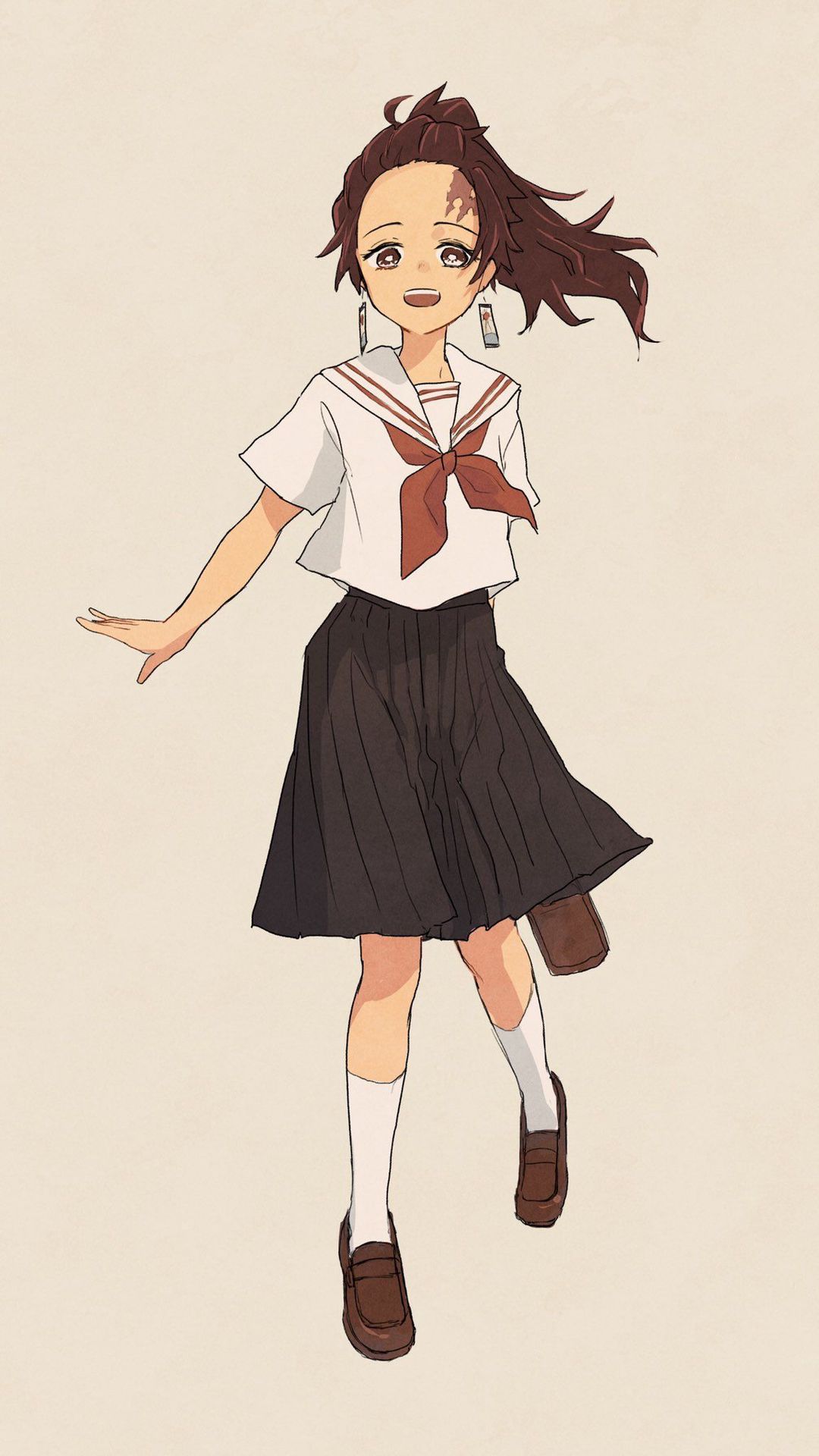 Ngoại hình: giống Tan, song sinh mà. Cô khoác một chiếc haori trắng với họa tiết hoa tử đằng màu máu(không có ảnh nha, khi nào có sẽ cập nhật cho nha) .