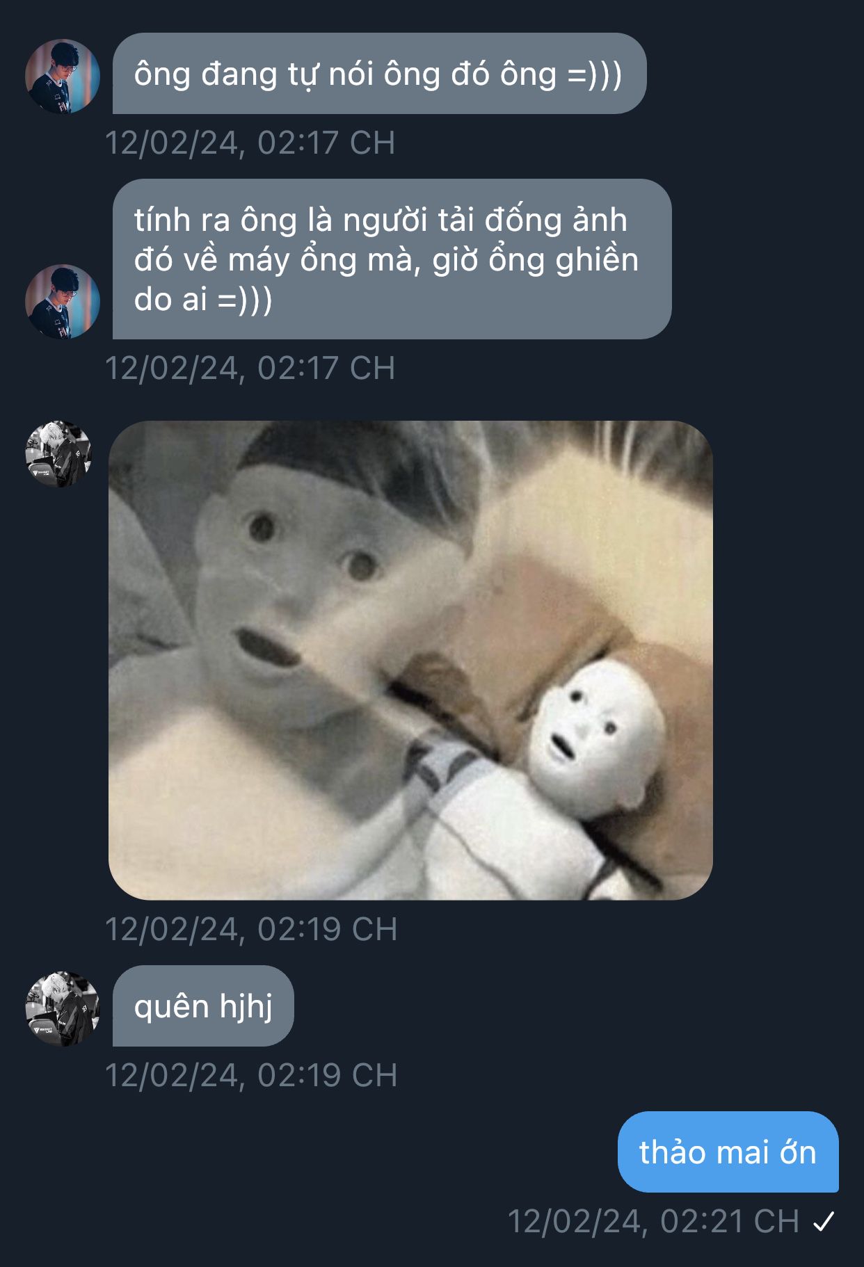 cậu gấu đang loay hoay với tên nhóc bướng bỉnh này thì có tiếng gõ cửa bên ngoài, thuận theo minhyeong liền bảo "vào đi", vốn trong đầu cậu đang khăng khăng là moon hyeonjun và choi wooje đến vì nghe sự tình, nhưng hoá ra lại là anh kim hyukkyu tới thăm.