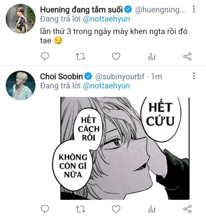 Beomgyu trố mắt "Nhìn không ra cậu nhỏ hơn tớ đấy!".