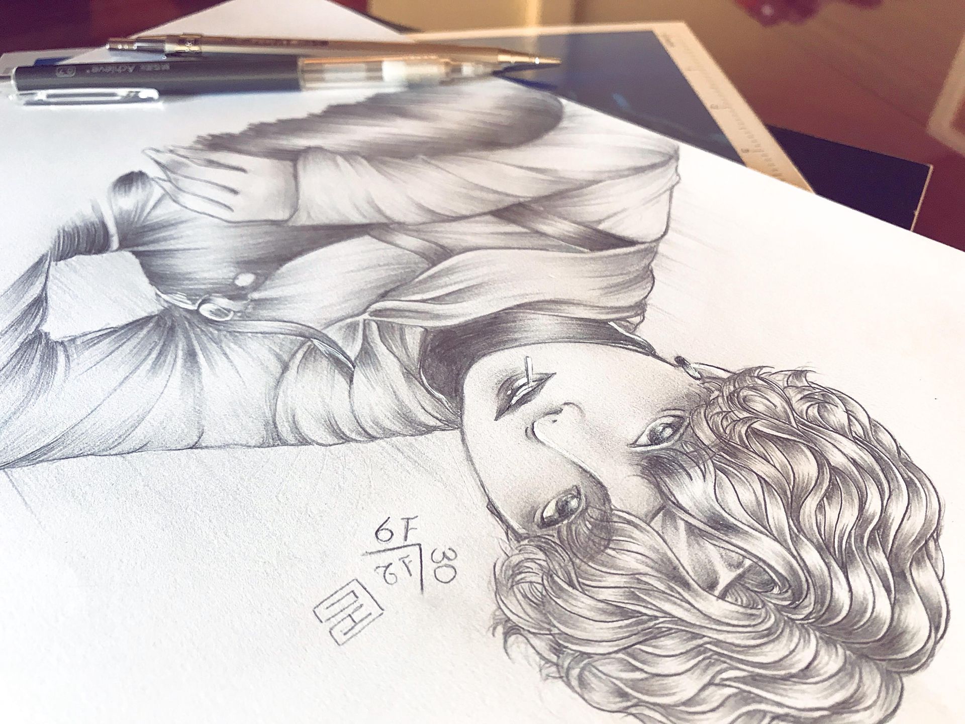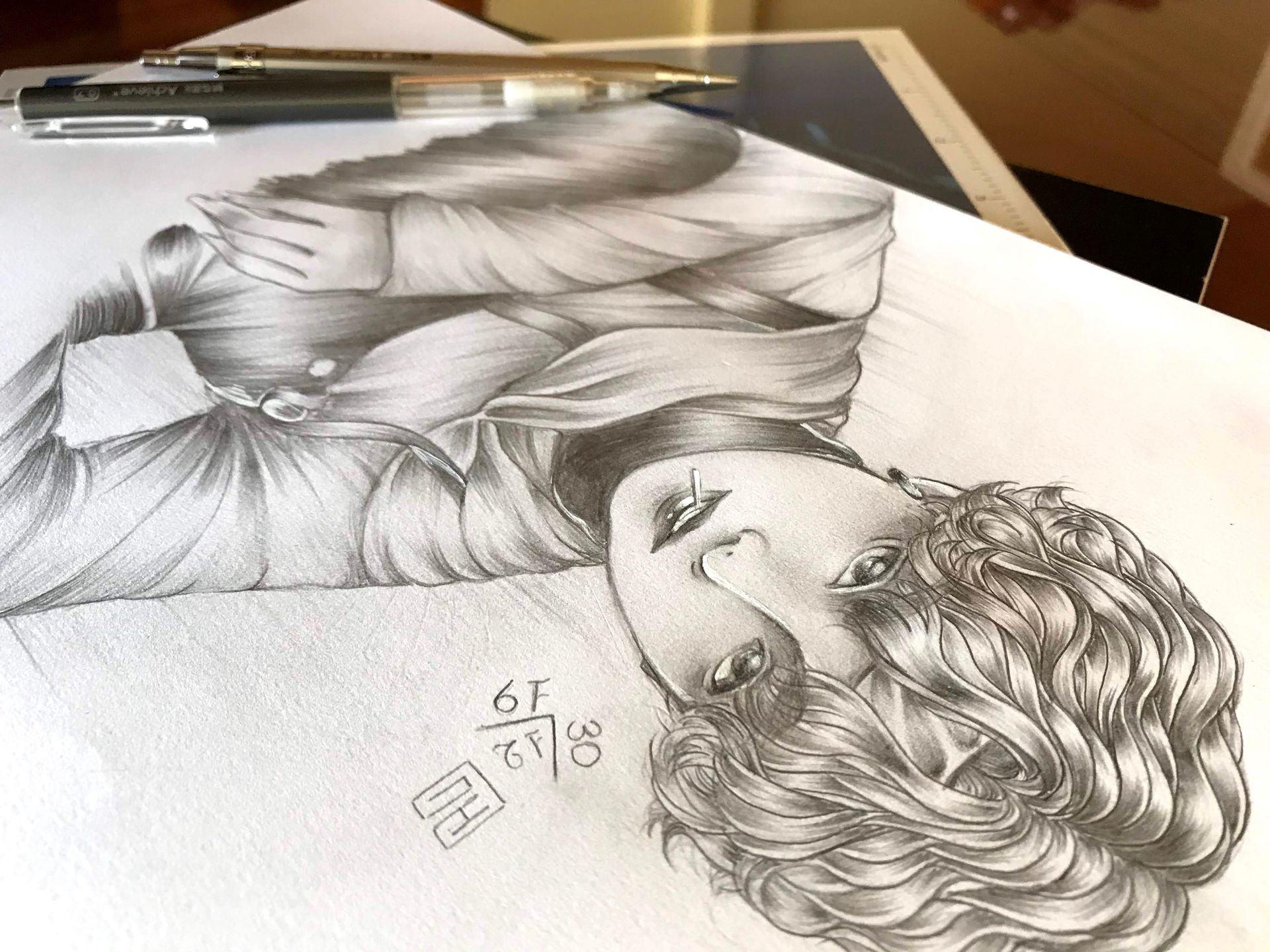 —Chuyện là, tớ được các sempoi khen là sketch khá sạch, từ bữa đó đến giờ kiểu lâng lâng :>✨ nhưng hôm qua mới bị diban quạc cho :> nó bảo mắt với sống mũi tả hơi "thường", kiểu chưa làm sống được tranh ấy ="> hihuw dù sao vẫn yêu mày :">